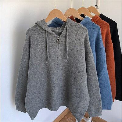 韓国 パーカー 韓国 スウェット ニット レディース ジップアップ ニット韓国 パーカー セーター トップス カーディガン アウター 羽織り 長袖 お洒落 フード付き韓国 パーカー | koookooo
