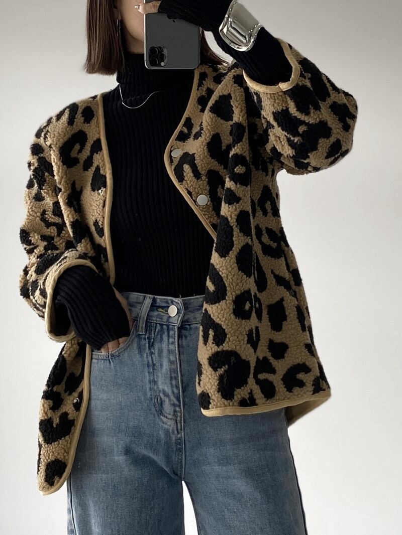 2023年秋冬INS 新作 レトロ 設計感 ヒョウ柄 ゆったり  コート