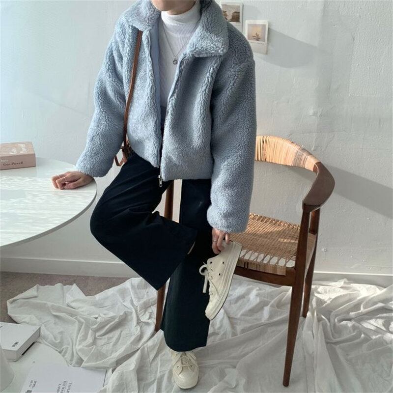 2023年秋冬INS 新作 若く見え 折り襟 ジッパー フェイクファー ジャケット