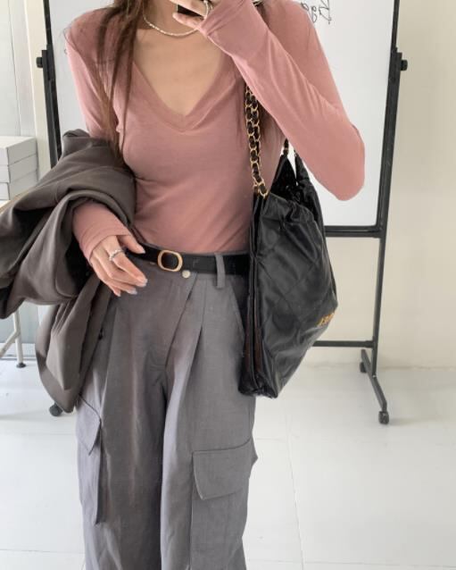 2022春秋新作 レディース 女 トップス 長袖 Vネック 無地 Tシャツ インナー S-L