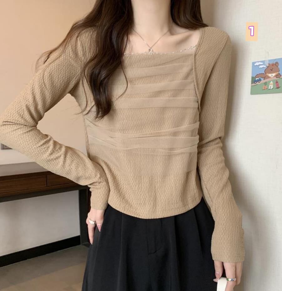 2022春秋新作 レディース 女 トップス 長袖 チュール 無地 Tシャツ インナー S-XL