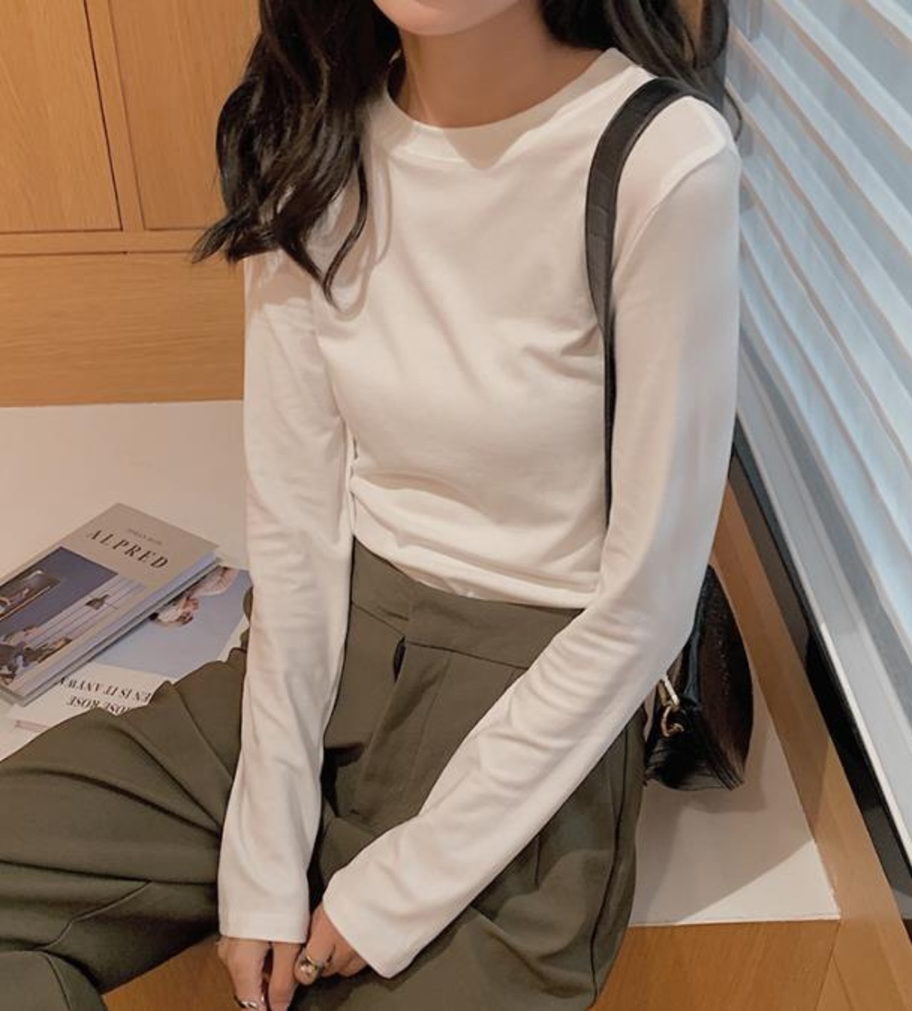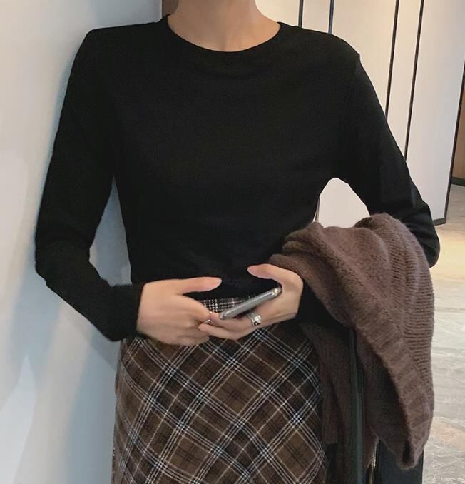 2023秋冬新作 レディース 女 トップス 長袖 無地 Tシャツ インナー S-2XL