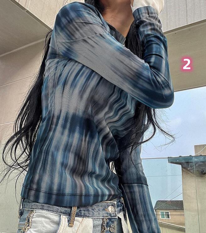 2023春秋新作 レディース 女 トップス 長袖 ハイネック プリント Tシャツ インナー S-L