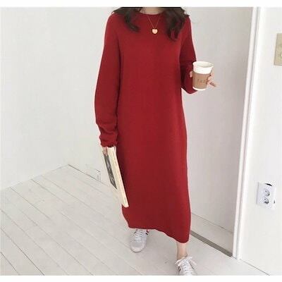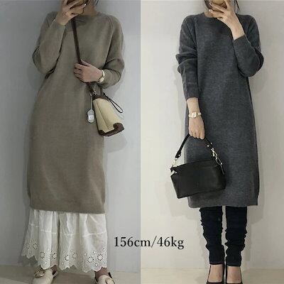 ニットワンピース ワンピース 冬 ロングワンピース ニット レディース 秋冬 ニットワンピー ラウンドネック ニット 膝丈ワンピース ゆったり 可愛い 体型カバー カジュアル 秋 春 40代 通勤 ミ | koookooo