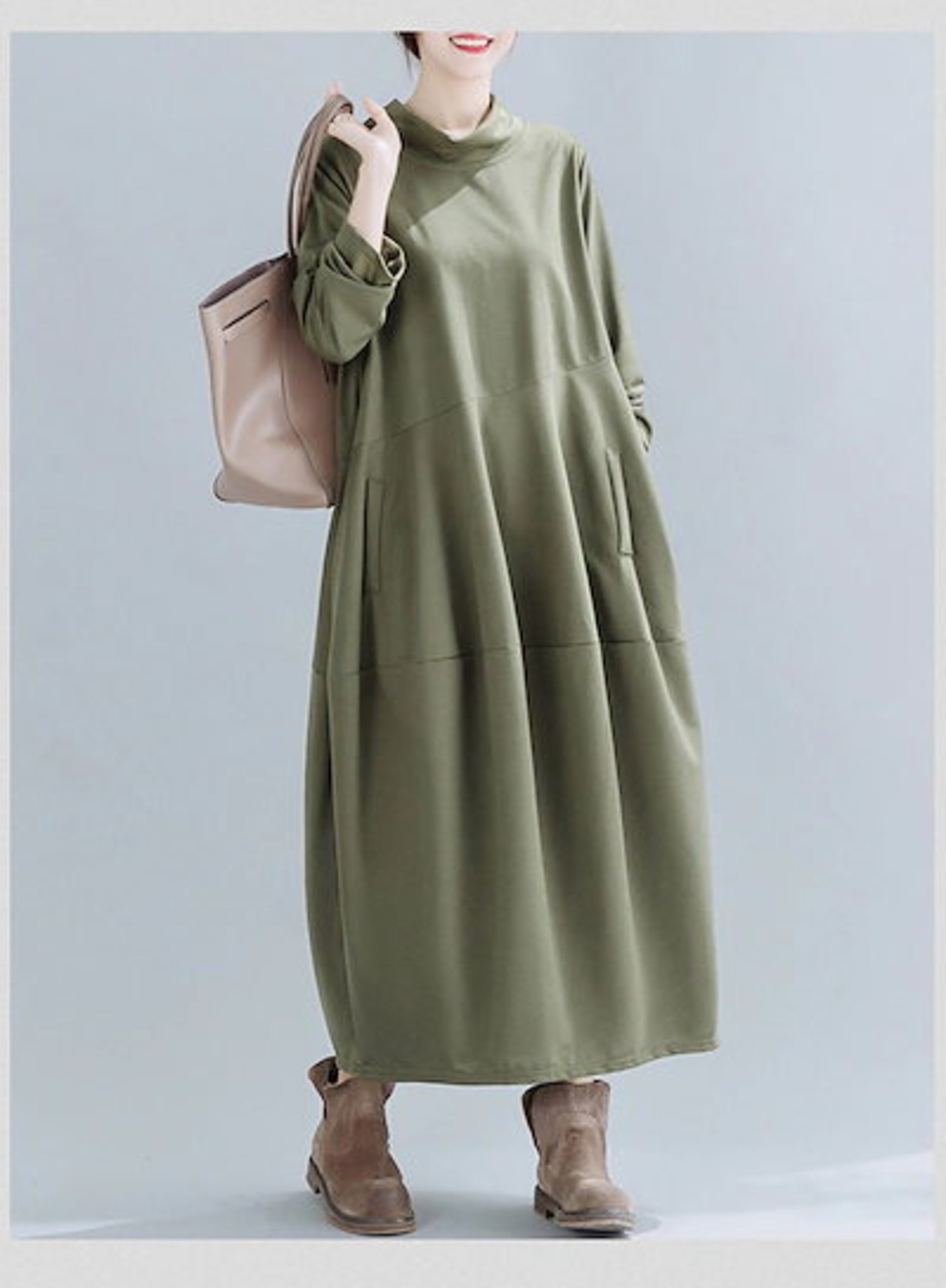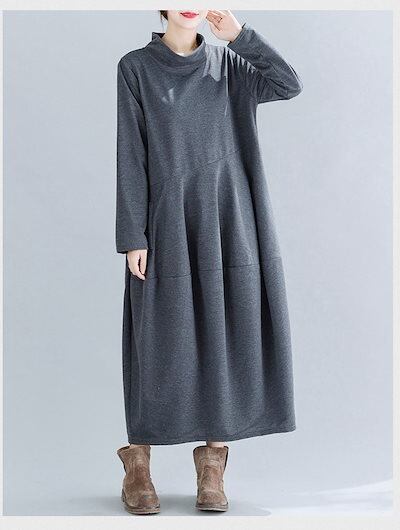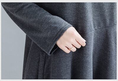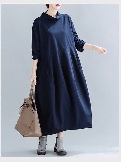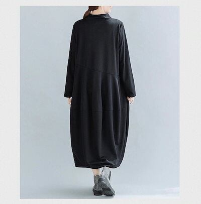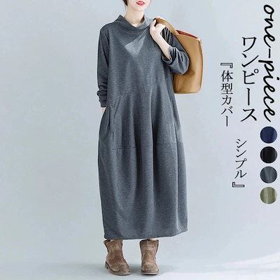 ワンピース レディース 秋冬 ロングワンピース プチハイネック 長袖 チュニック ロングワンピ ミモレ丈 ポケット付き 無地 マキシワンピース 大きいサイズ キルティング 体型カバー おしゃれ 通勤 | koookooo