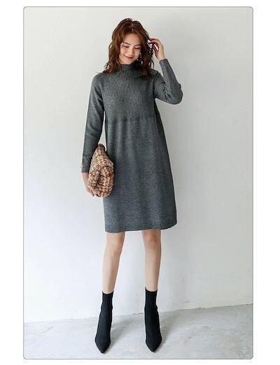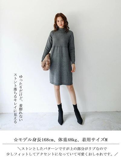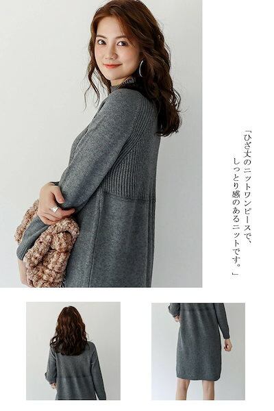 ワンピース ニット レディース チュニック リブニット ニットワンピ セーター ロングワンピース カットソー ロングニット 冬物 無地 あったかい 膝丈 長袖 ワンピース トップス 秋冬 ニットソー | koookooo