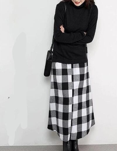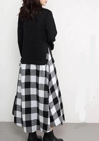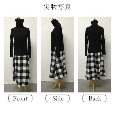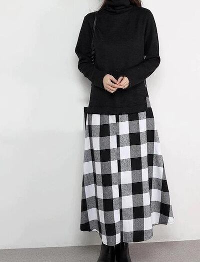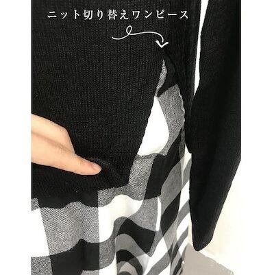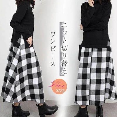 ニットワンピース ワンピース ロングワンピース レディース 秋冬 長袖 ハイネック ニット切り替え チェック柄スカート セットアップ風 きれいめ 秋冬 可愛い 大人 ロング丈 秋 冬 | koookooo