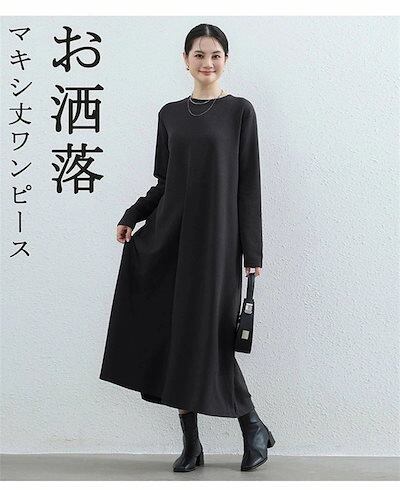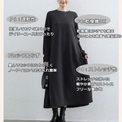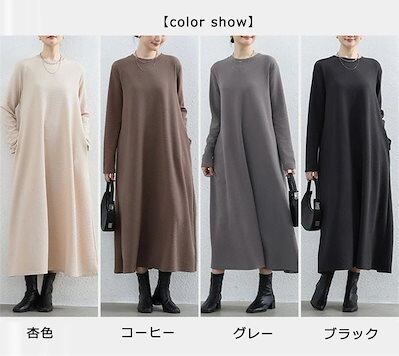 マキシワンピース ワンピース レディース 無地 秋 ロングワンピース 大きいサイズ 体型カバー 冬 ゆったり ロングワンピ ラウンドネック マキシ丈 フレア ワンピ 長袖 秋冬 黒 | koookooo