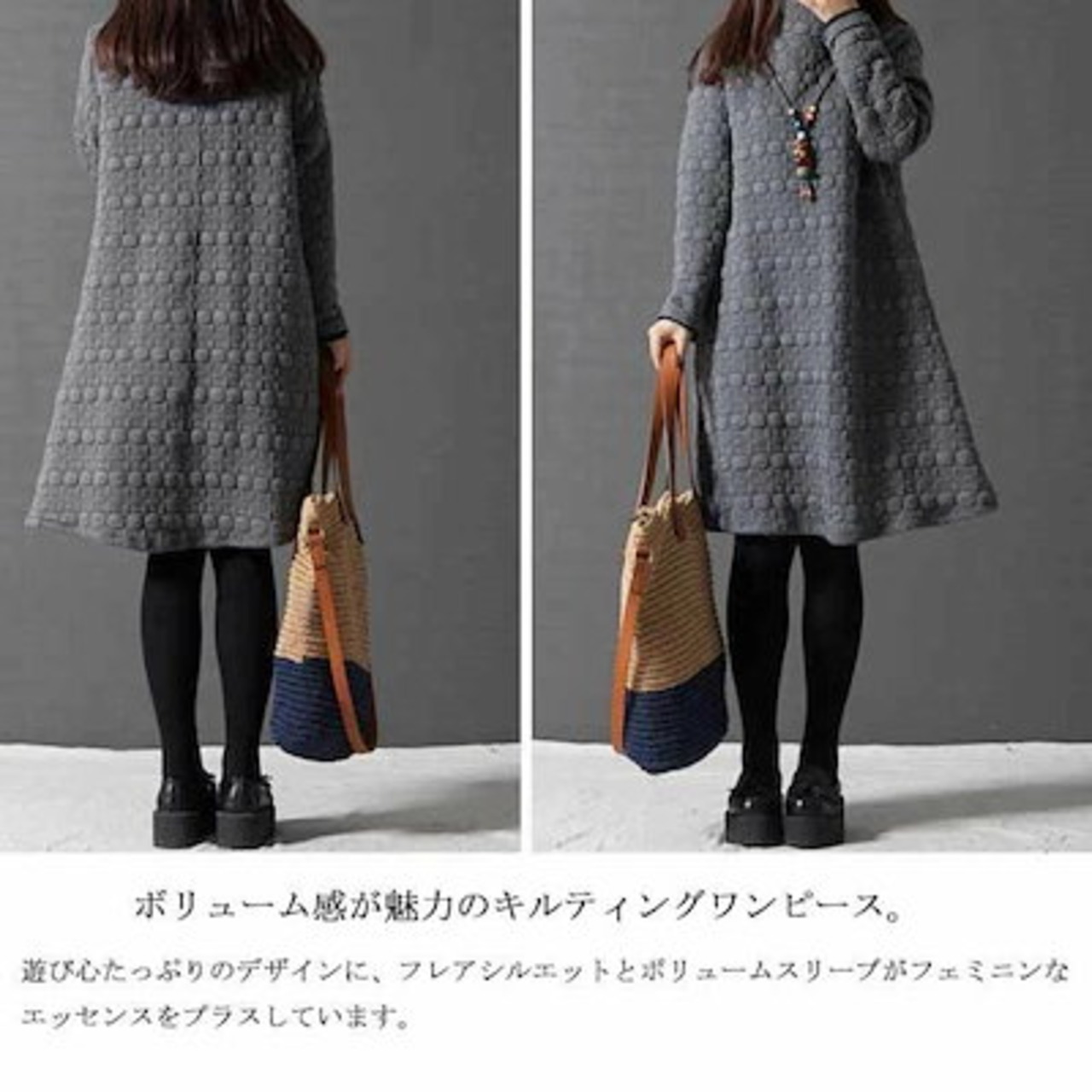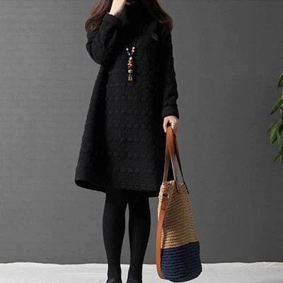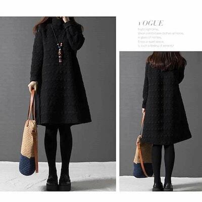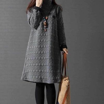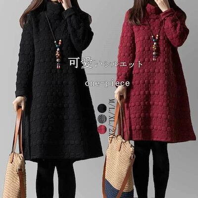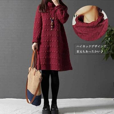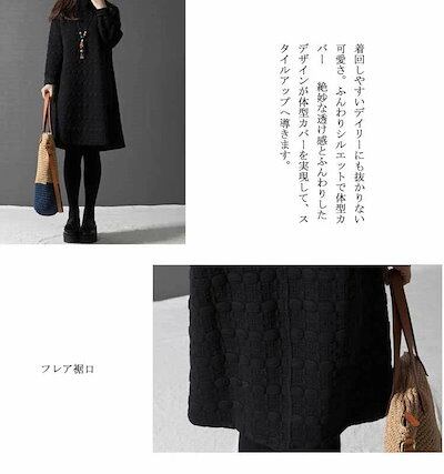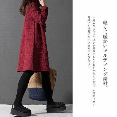 チュニック 長袖 ワンピース レディース 秋冬 aラインワンピース 膝丈 チュニックワンピース 50代 40代 ワンピース フレア 無地 防寒 キルティング ロングワンピ 体型カバー ゆったり 大きい | koookooo
