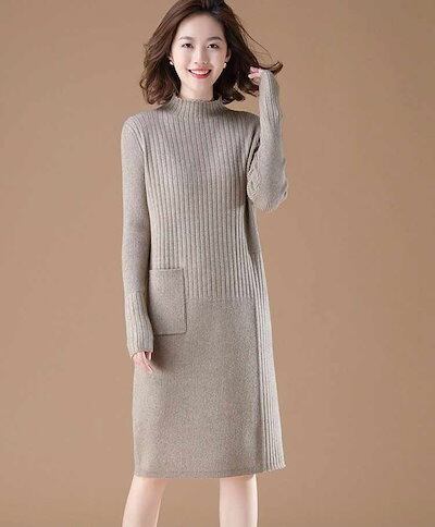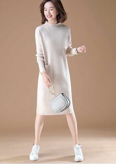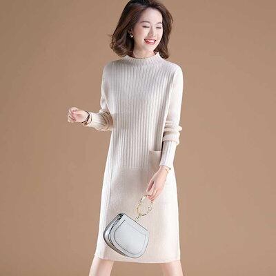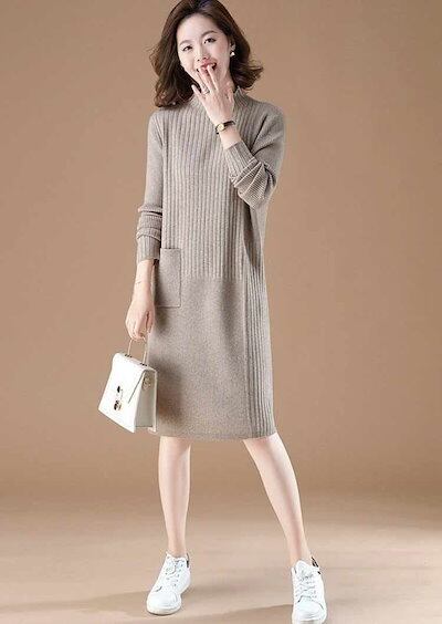 ワンピース ニット レディース チュニック 長袖 セーター ロング丈 トップス ニットワンピース 秋冬 メロウフリル タイトワンピース 膝丈 冬 ロングワンピース 秋 ワンピース タイト ニットソー | koookooo