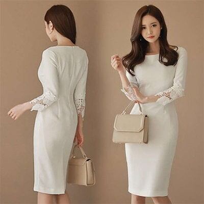 【9月新作】ワンピースドレス ワンピース レディース 40代 春秋冬 きれいめ 膝丈ワンピース レースドレス 長袖タイトスカート 白 結婚式ドレス 韓国風 上品 セクシー オシャレ 母の日プレゼント | koookooo