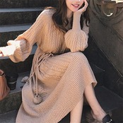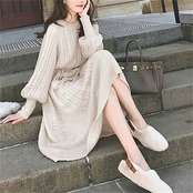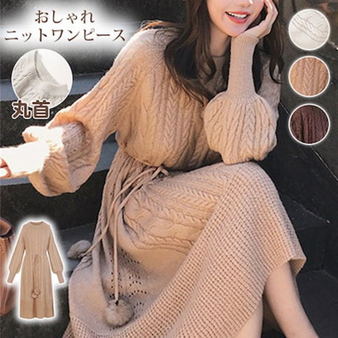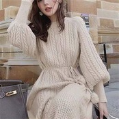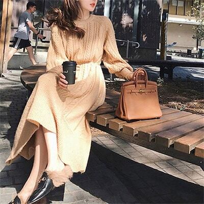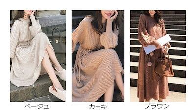 【9月新作】ワンピース ニットワンピース レディース ニット 長袖 ロングワンピース エレガント ケーブル編み タイト あったか ふわふわ 丸首 おしゃれ 秋冬 秋 ゆったり