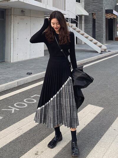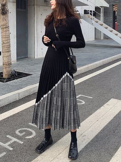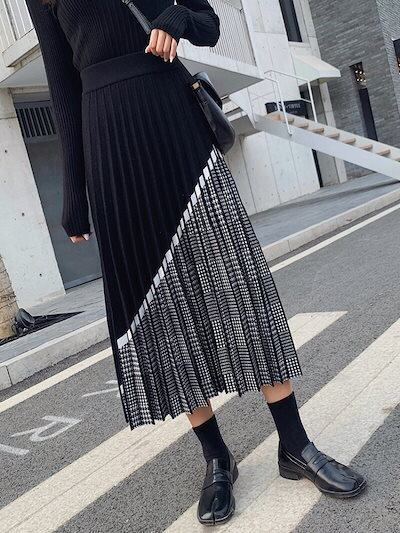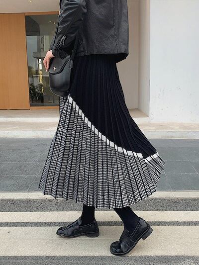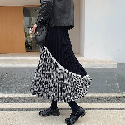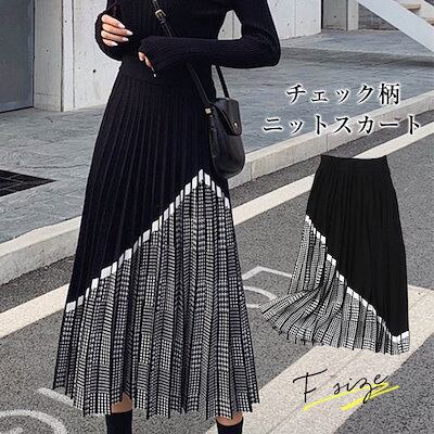【9月新作】ニットスカート スカート チェック柄 レディース ニット プリーツスカート 可愛い カジュアル 秋 冬 防寒 ウエストゴム おしゃれ Aライン 柔らかい 着心地 上品 女性らしい 美ライン | koookooo