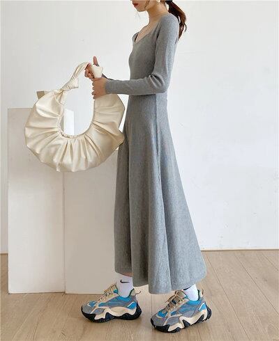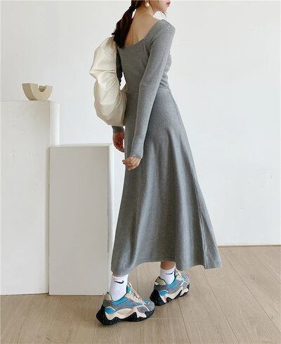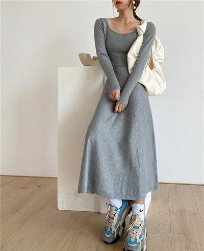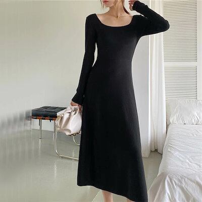 【9月新作】ニットワンピース ワンピース ロングニット レディース 秋冬 無地 韓国風 上品 ロング丈 長袖 着痩せ フレアワンピース シンプル カジュアル 柔らか 暖か 女性らしい セクシー エレガ | koookooo