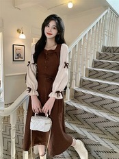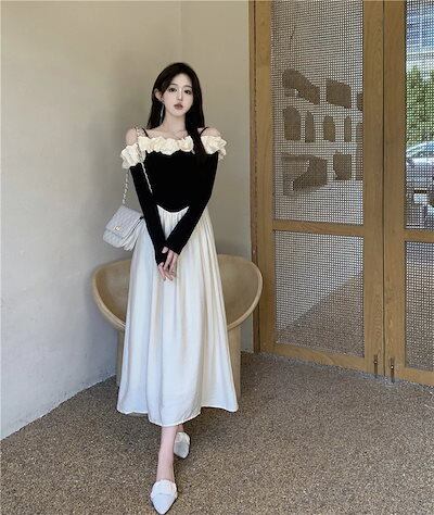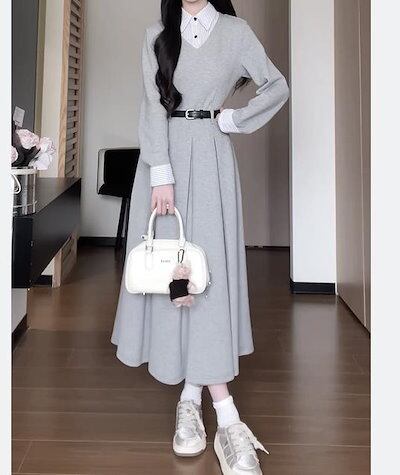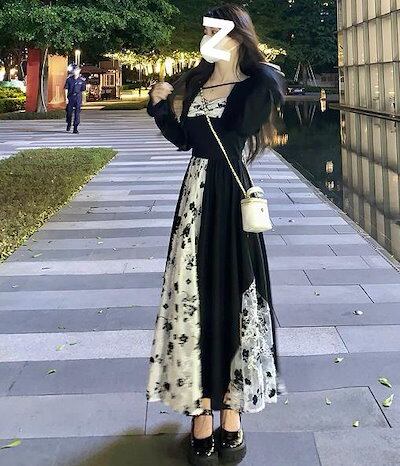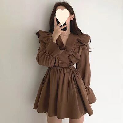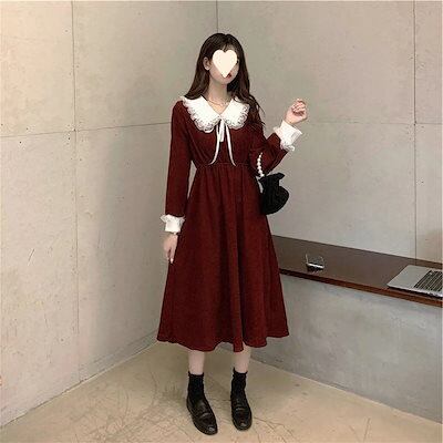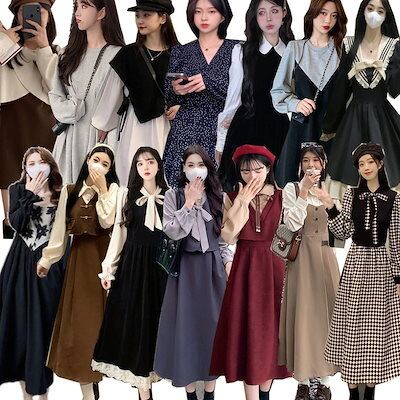 341【新品】2025秋冬新追加!!!人気 ドレス 韓国ファッション カジュアル 大きいサイズ レースワンピース 花柄 無地 ロングワンピース レディースTシャツワンピース 長袖 | koookooo