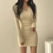 150ワ ドレス タートルネックワンピース ニットワンピース セーター レディースファッション トップス ニットトップス インナーセーターヒップワンピース 韓国秋冬レトロVネックスリムボトムニットワ | koookooo
