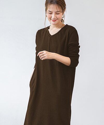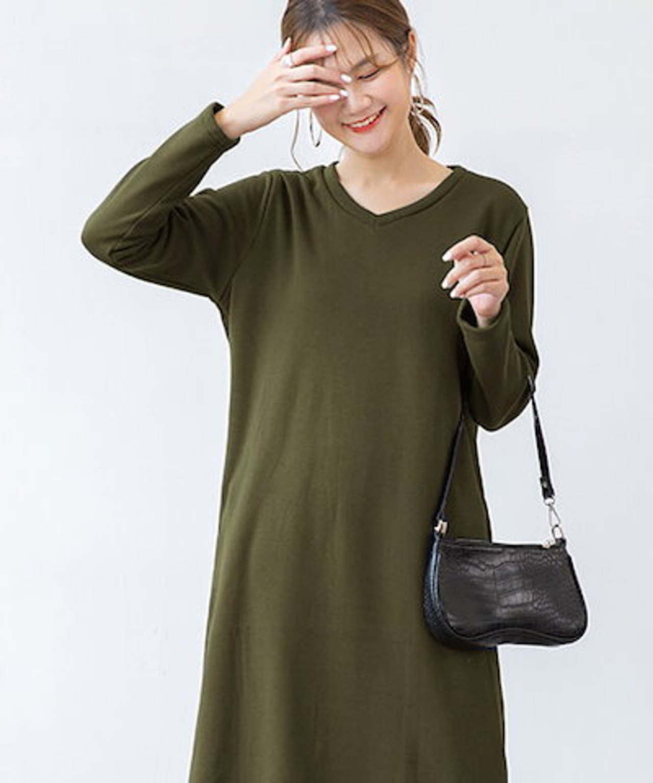 【期間特恵】ワンピース 冬 レディース 裏起毛 Uネック Vネック きれいめ 秋 秋冬 ロング ロングワンピース フリース 厚手 ミモレ丈 温かい 起毛 秋冬 スウェット 黒 yc3079b | koookooo