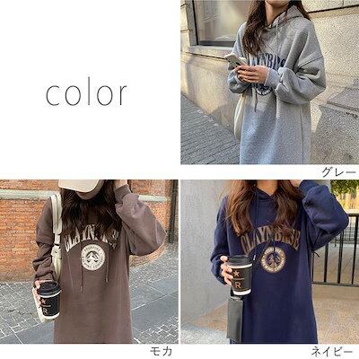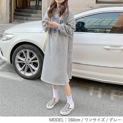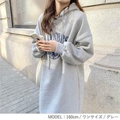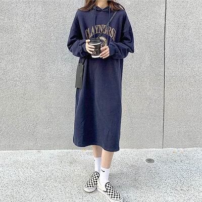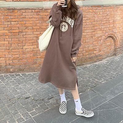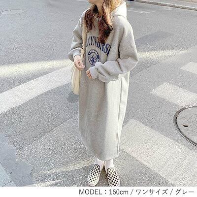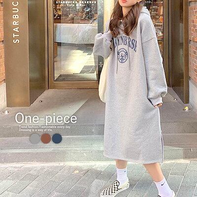 【本日限定】ワンピース ロング 裏起毛 レディース 長袖 秋 冬 おしゃれ かわいい スウェット パーカーワンピ カレッジロゴ w672