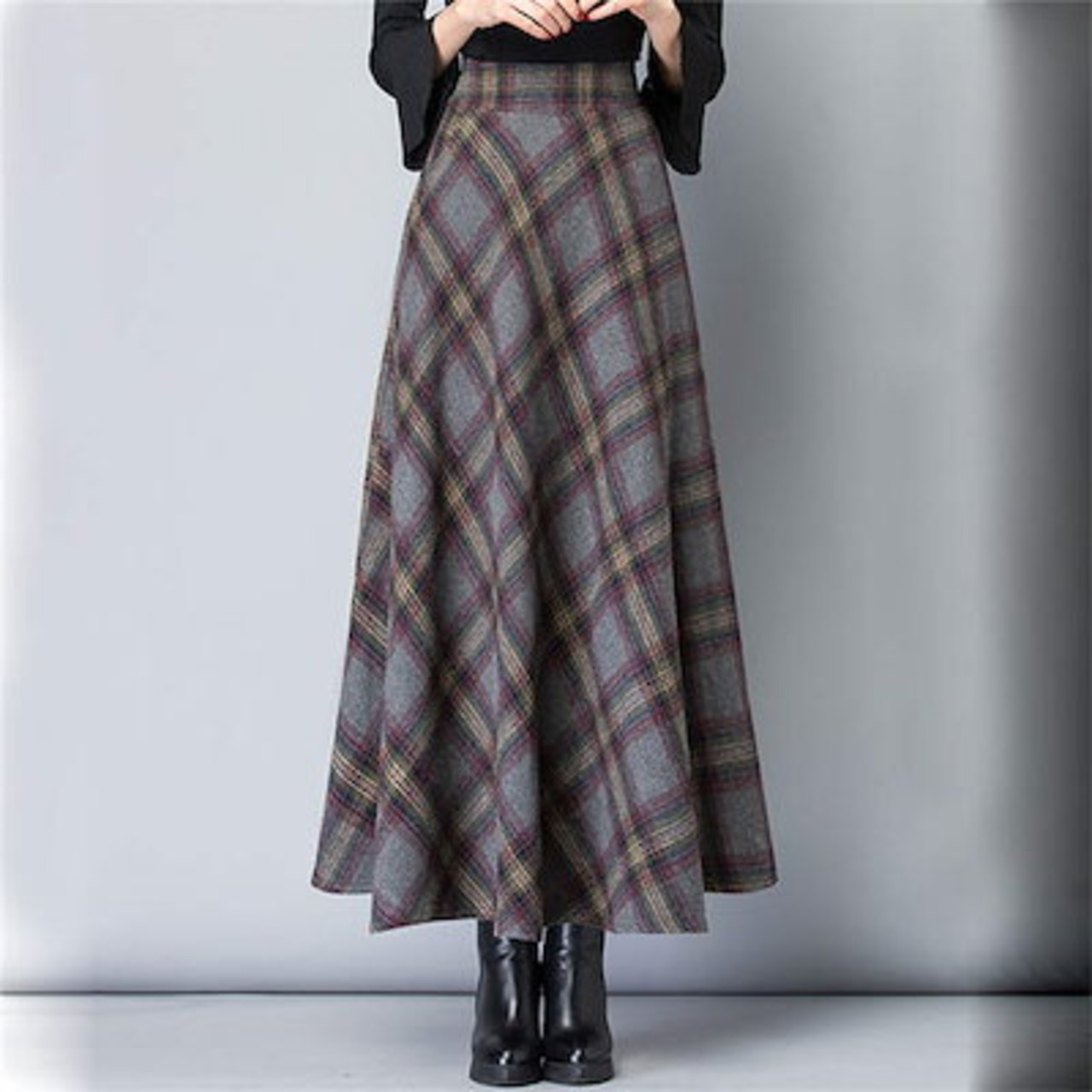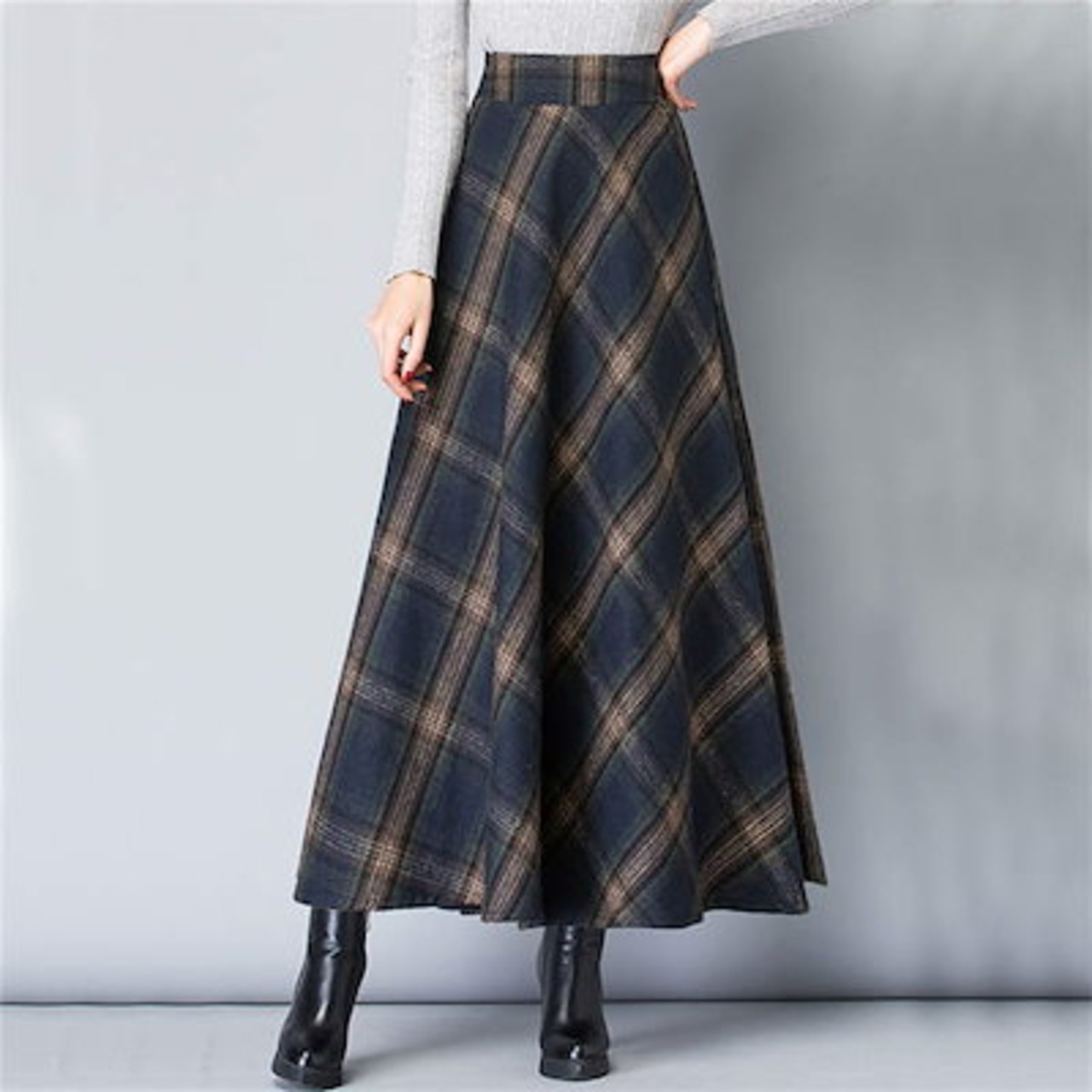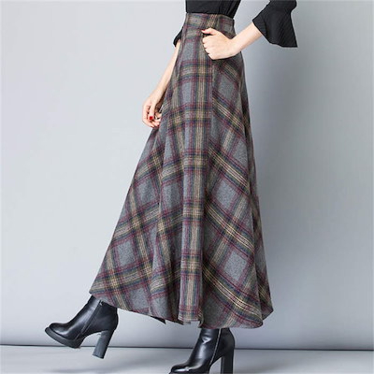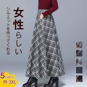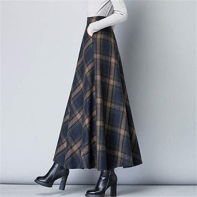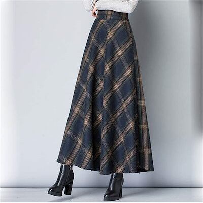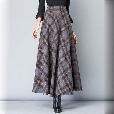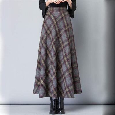 2025秋冬新作スカート ハイウエスト レディース 秋冬 チェック ロング Aラインスカート ボトムス マキシスカート カジュアル 着痩せ お洒落 きれいめ 着回し 体型カバー 厚手 暖か 防寒 ウエ | koookooo