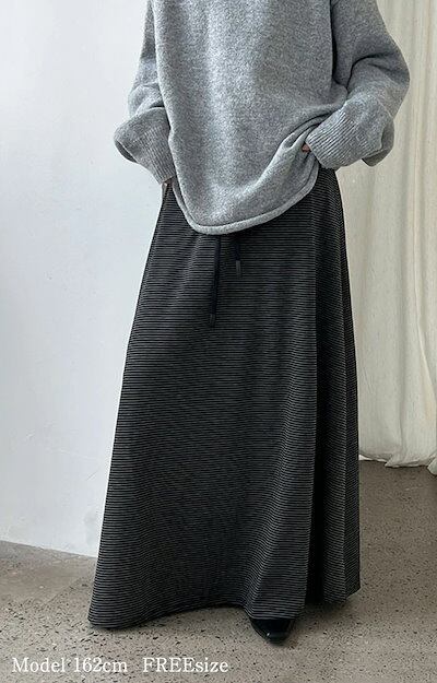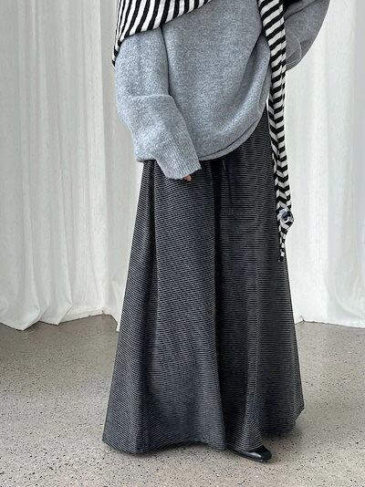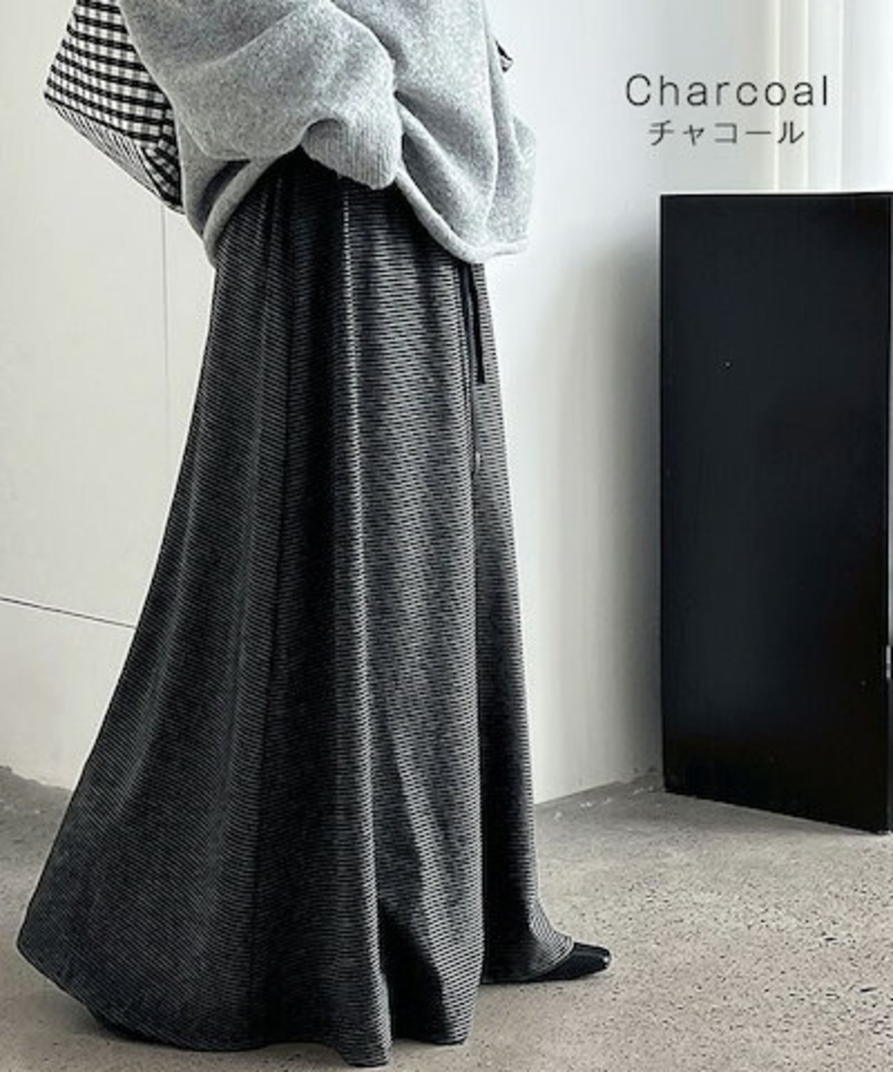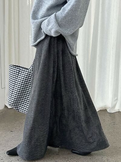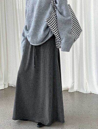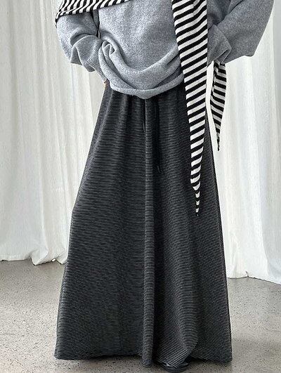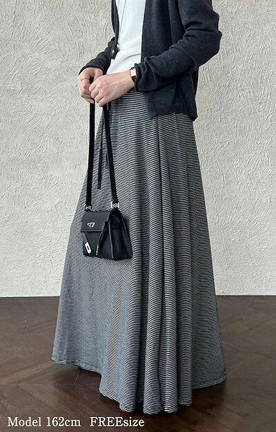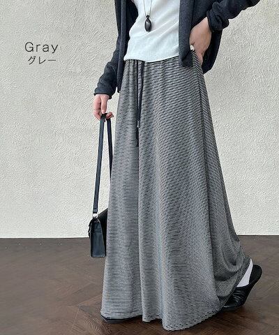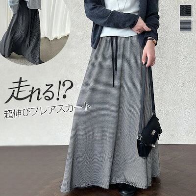 2025秋冬新作スカート Aライン レディース ロングスカート ボトムス きれいめ フレア フレアスカート ゴム ロング マキシ マキシスカート ボーダー ボトム ゆったり おしゃれ ストレッチ 秋 | koookooo