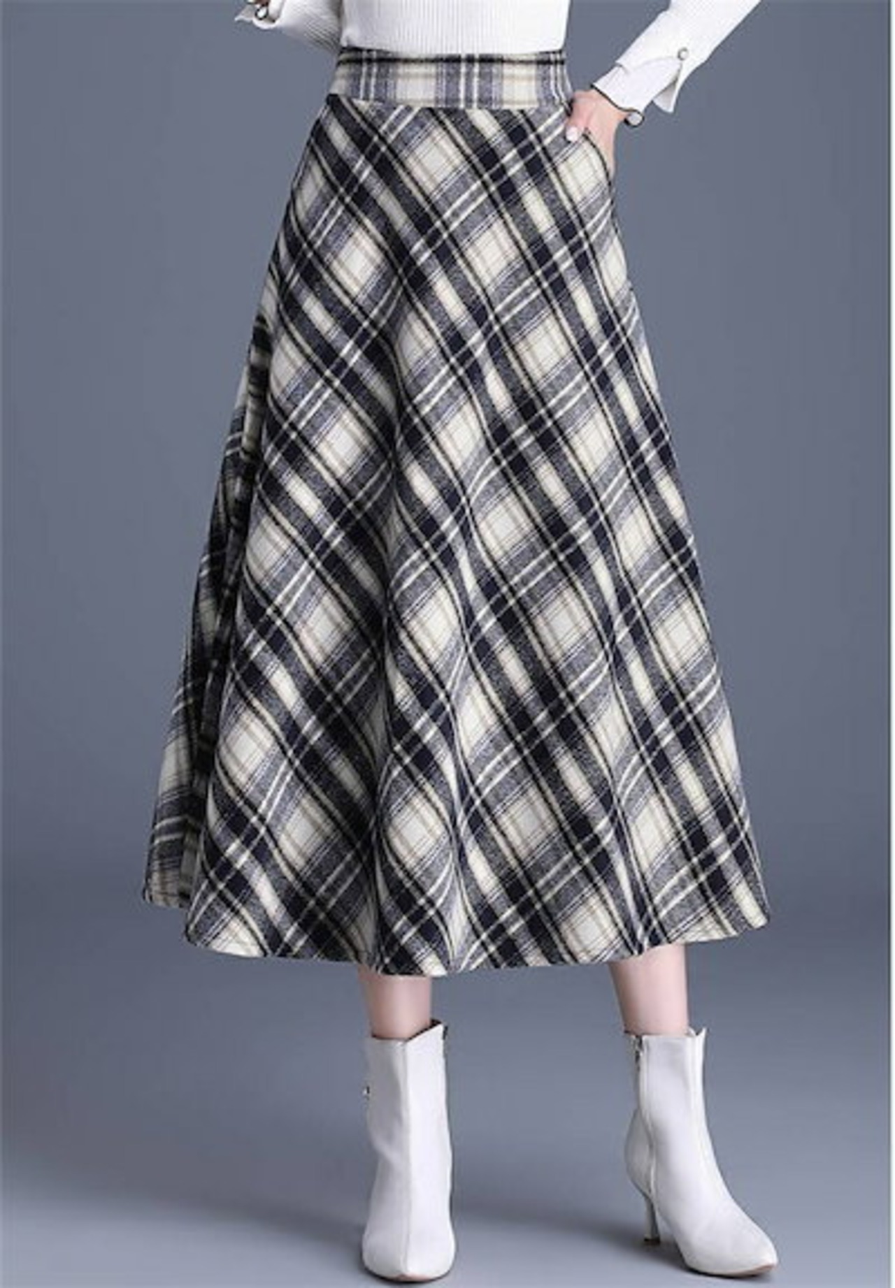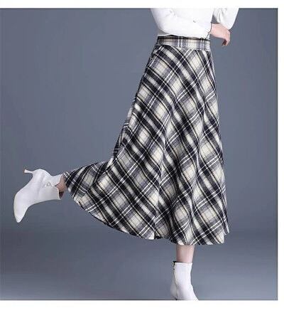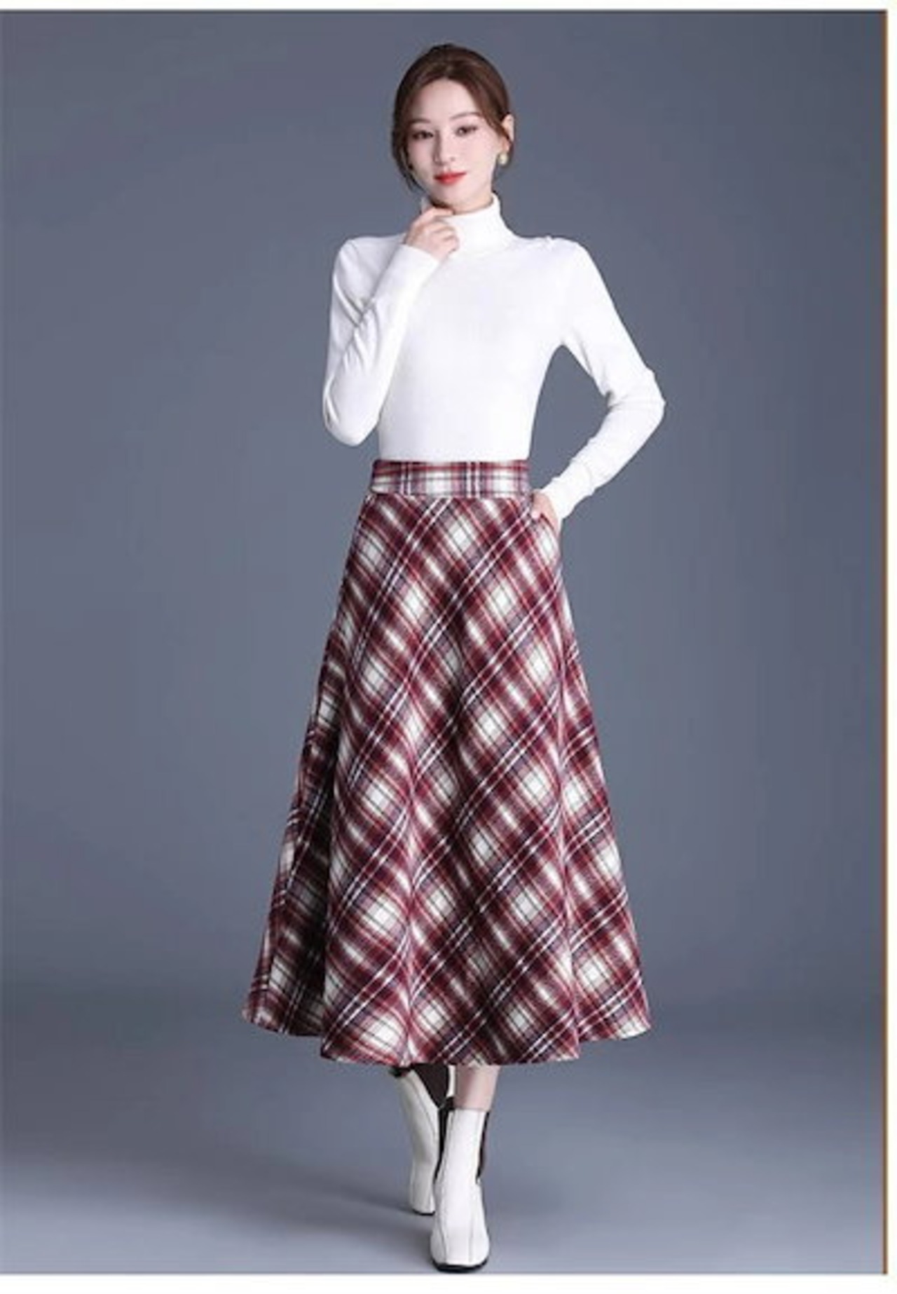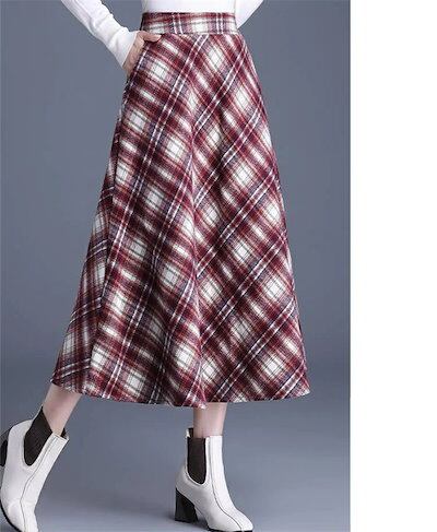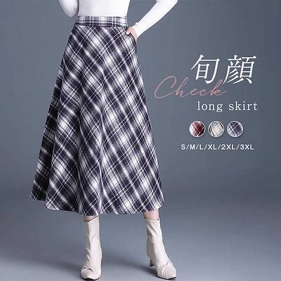2025秋冬新作スカート レディース ハイウエスト 秋冬 ロング チェック柄 Aラインスカート きれいめ ボトムス ミモレ丈 Aライン フレア お洒落 着回し 体型カバー 厚手 エレガント 大人 ゆ | koookooo