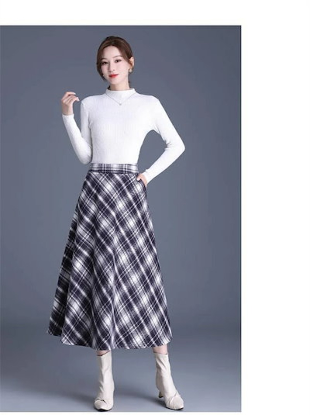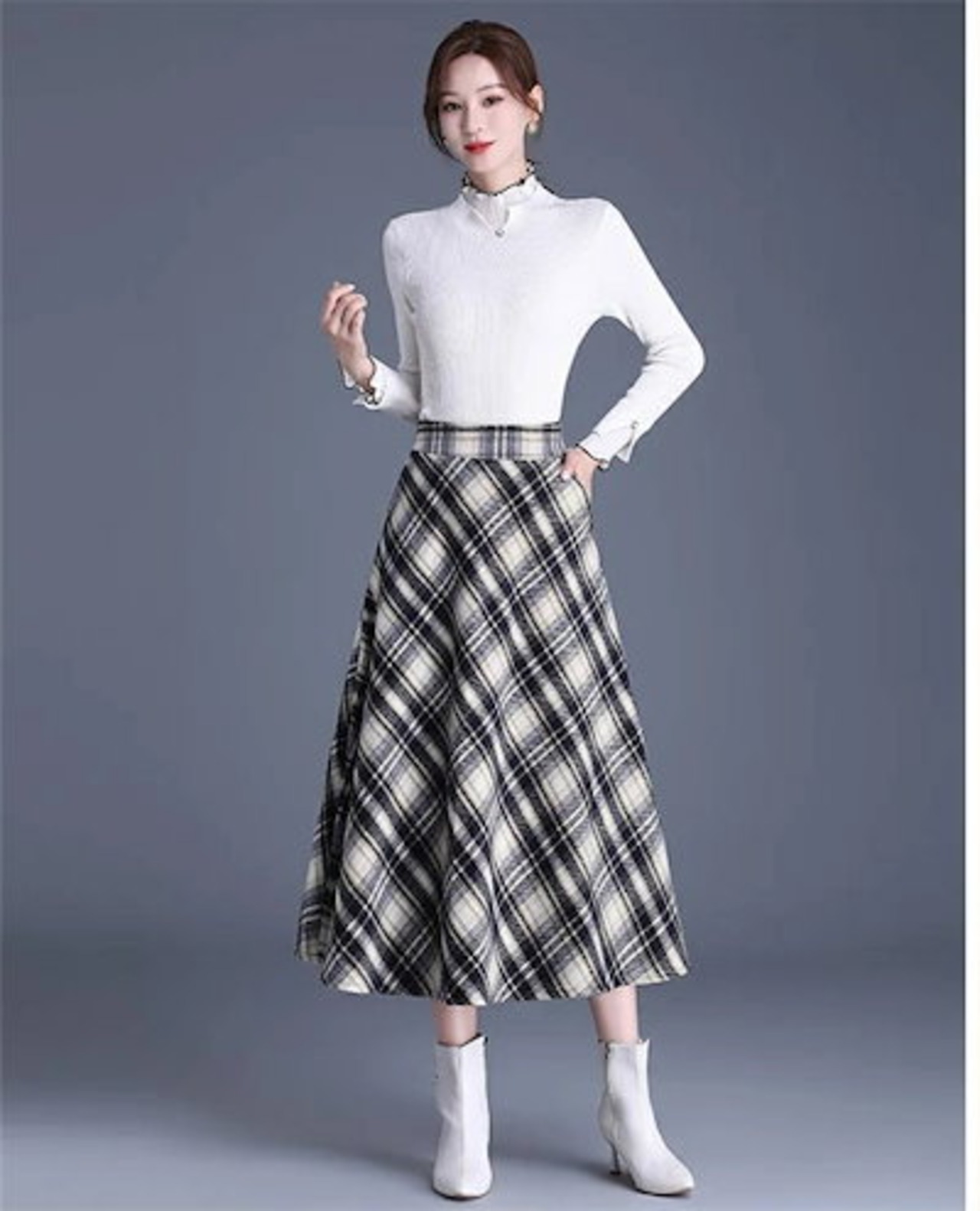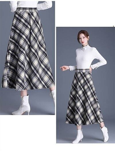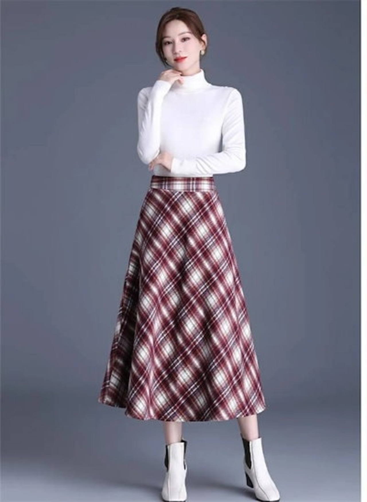 2025秋冬新作スカート レディース ハイウエスト 秋冬 ロング チェック柄 Aラインスカート きれいめ ボトムス ミモレ丈 Aライン フレア お洒落 着回し 体型カバー 厚手 エレガント 大人 ゆ | koookooo