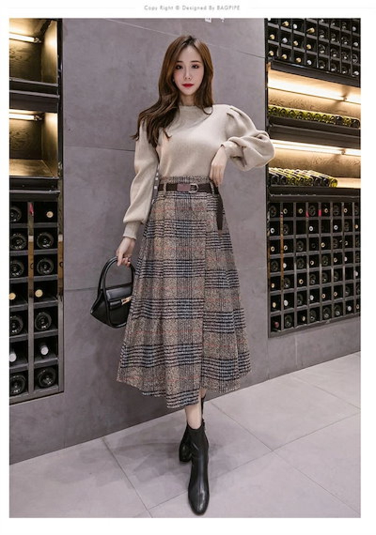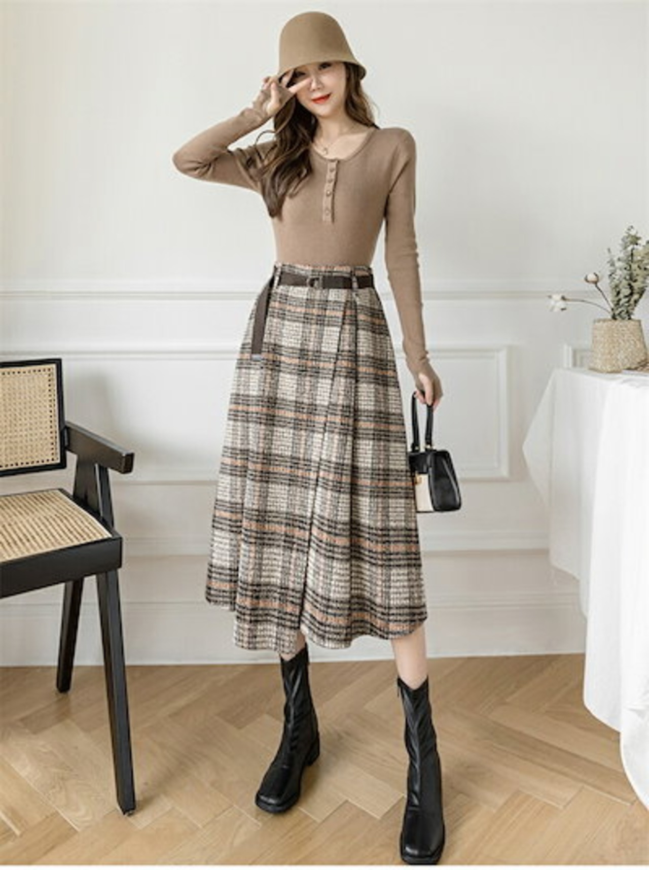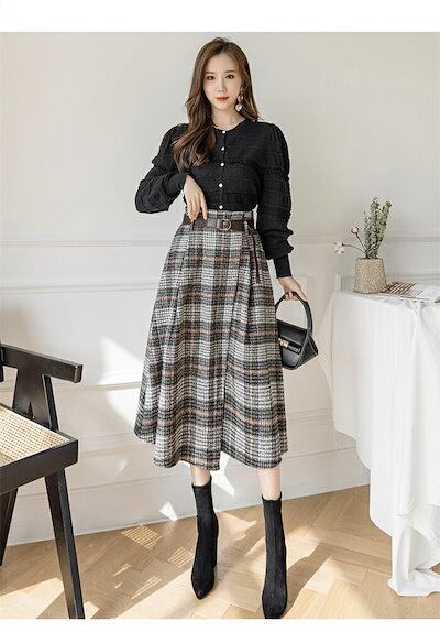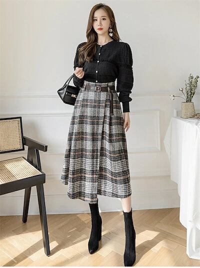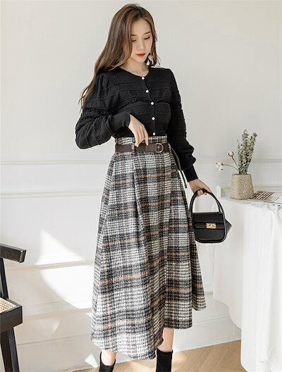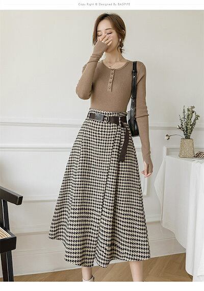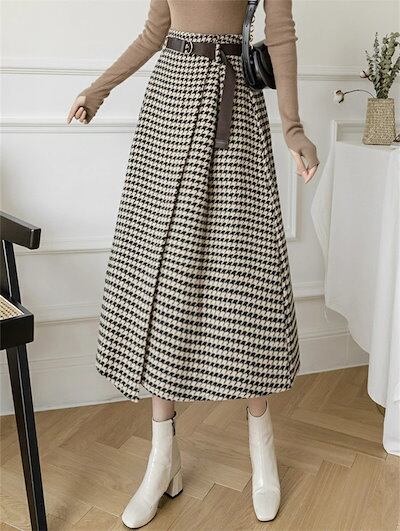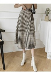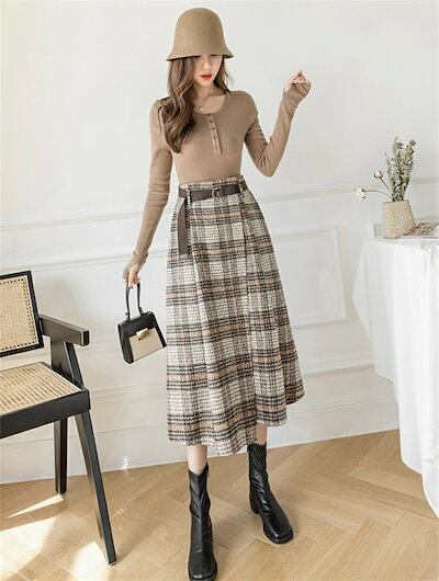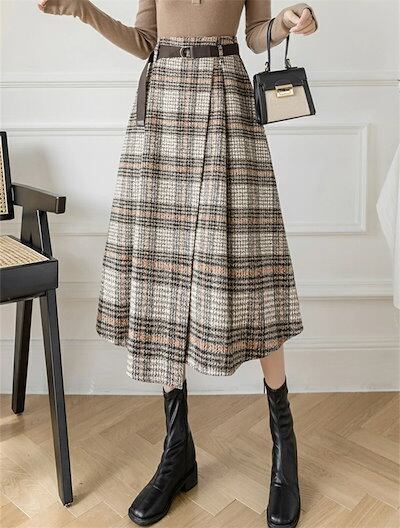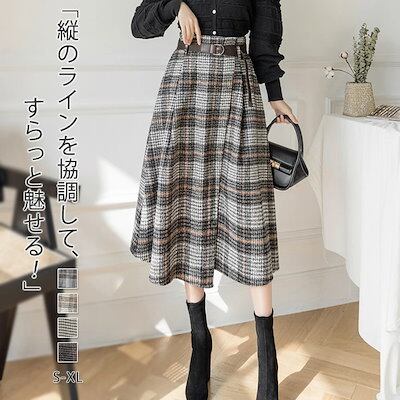 2025秋冬新作スカート レディース ハイウエスト 秋冬 きれいめ チェック柄 ロング Aラインスカート ボトムス ロング丈 Aライン フレア お洒落 着回し 体型カバー 厚手 膝下丈 エレガント 大 | koookooo