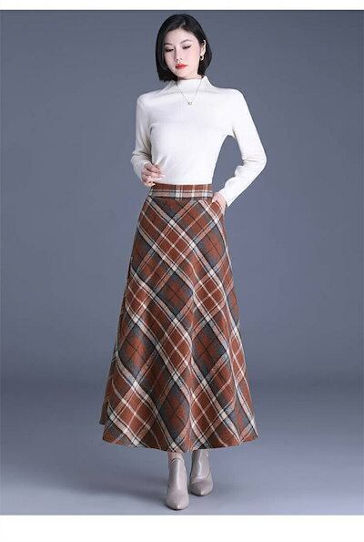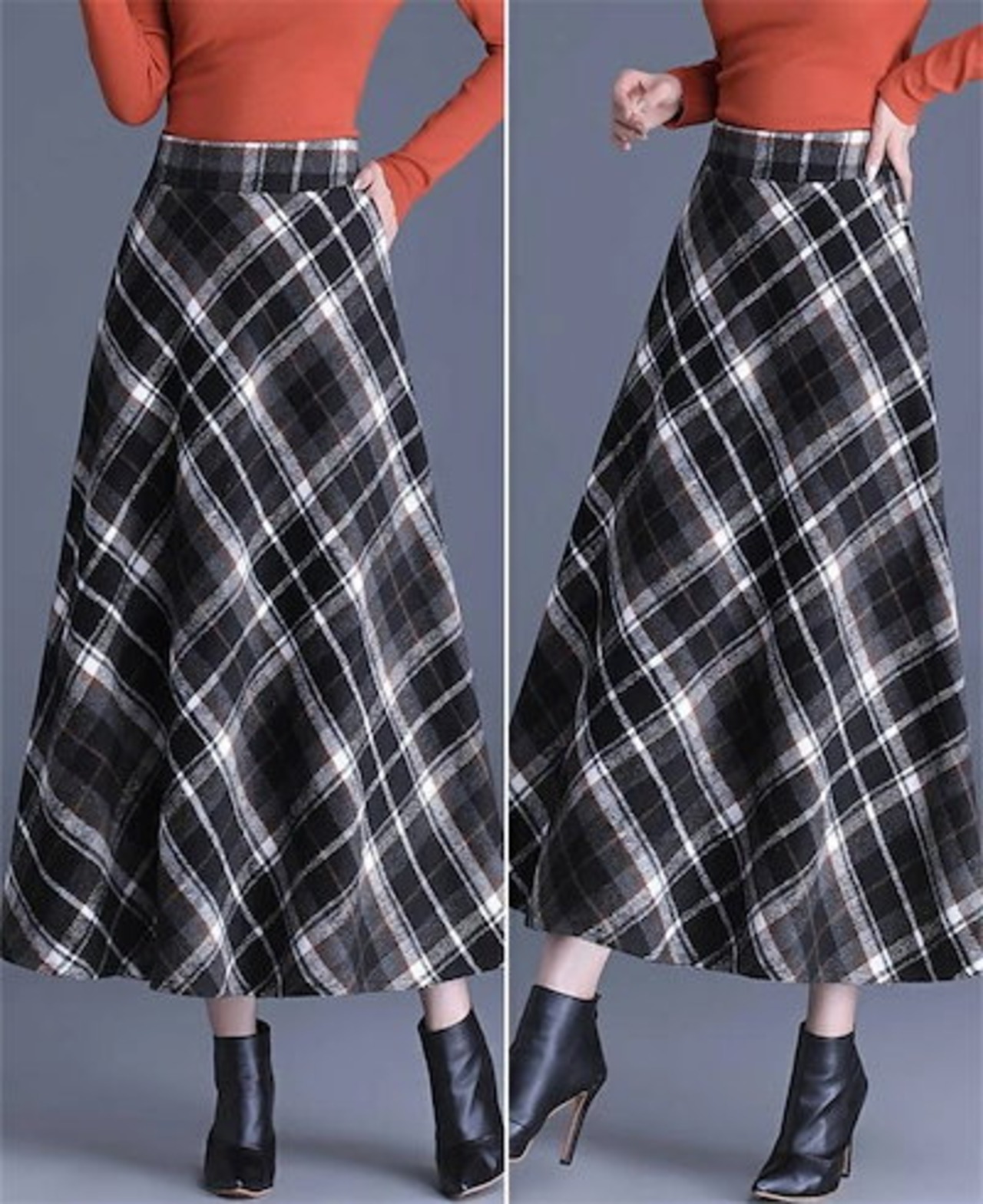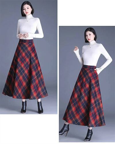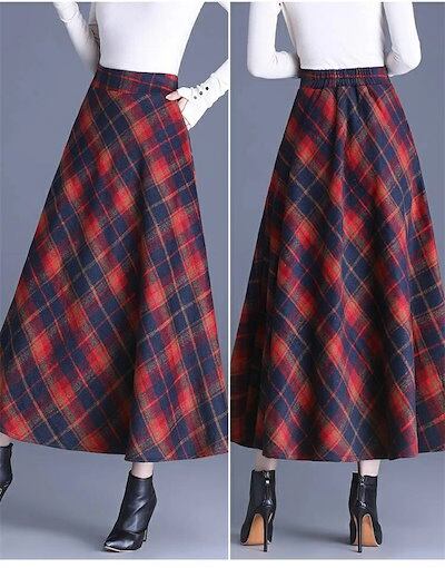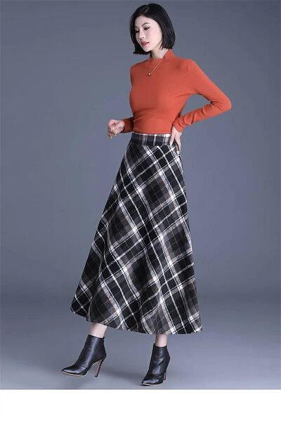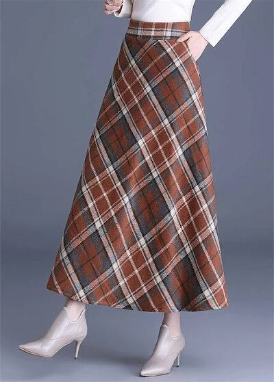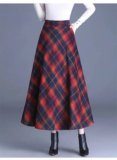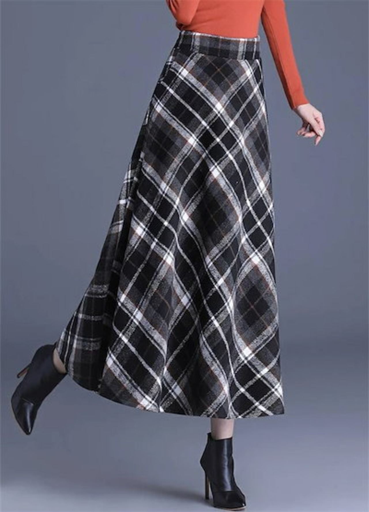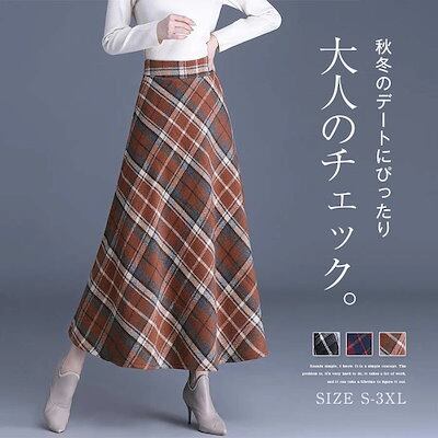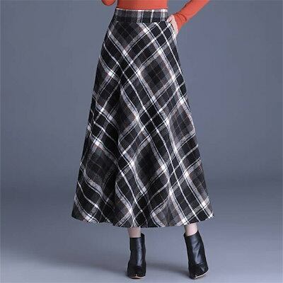 2025秋冬新作スカート レディース ハイウエスト 秋冬 きれいめ チェック柄 ロング Aラインスカート ボトムス ミモレ丈 Aライン フレア お洒落 着回し 体型カバー 厚手 エレガント 大人 ゆ | koookooo