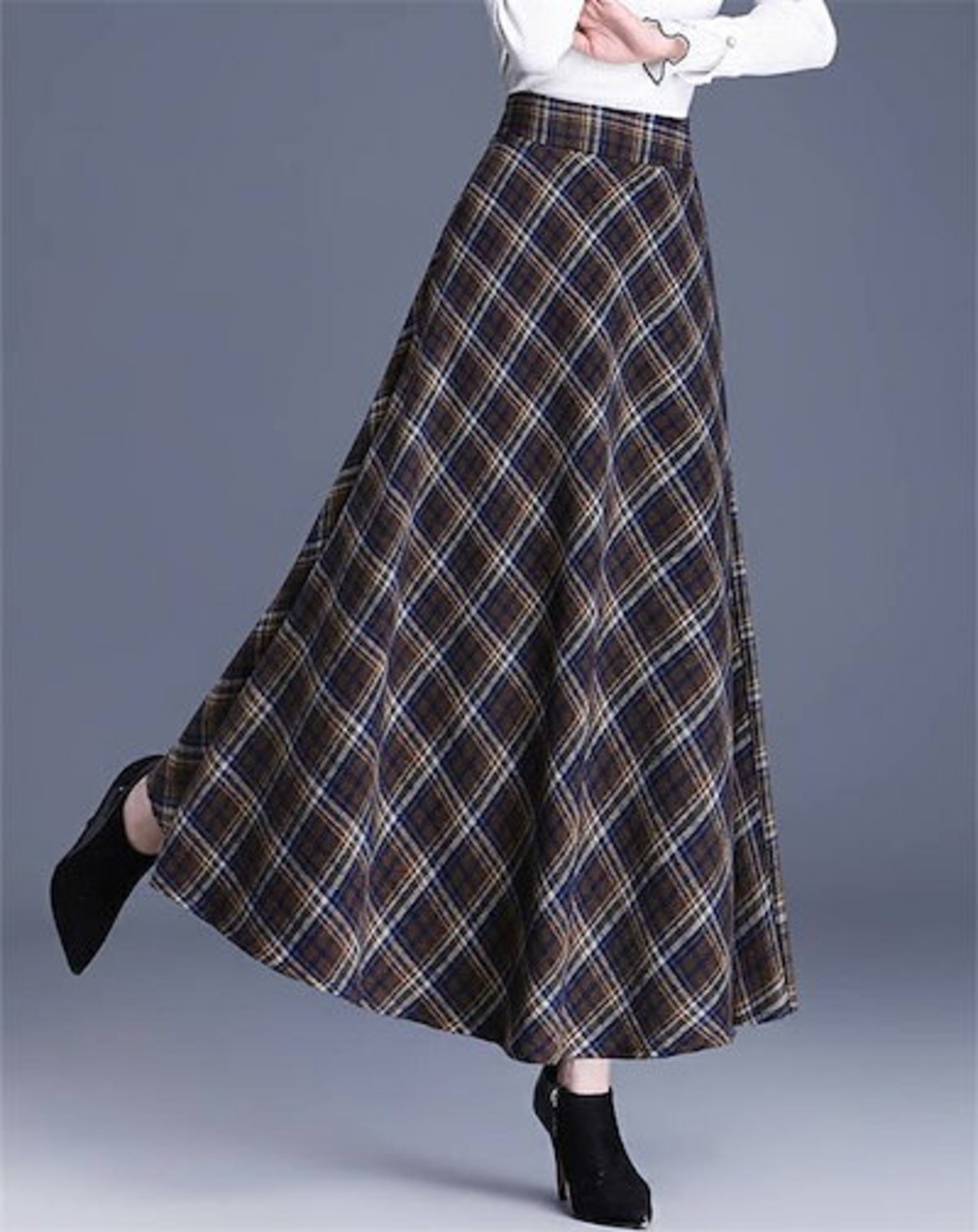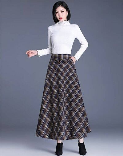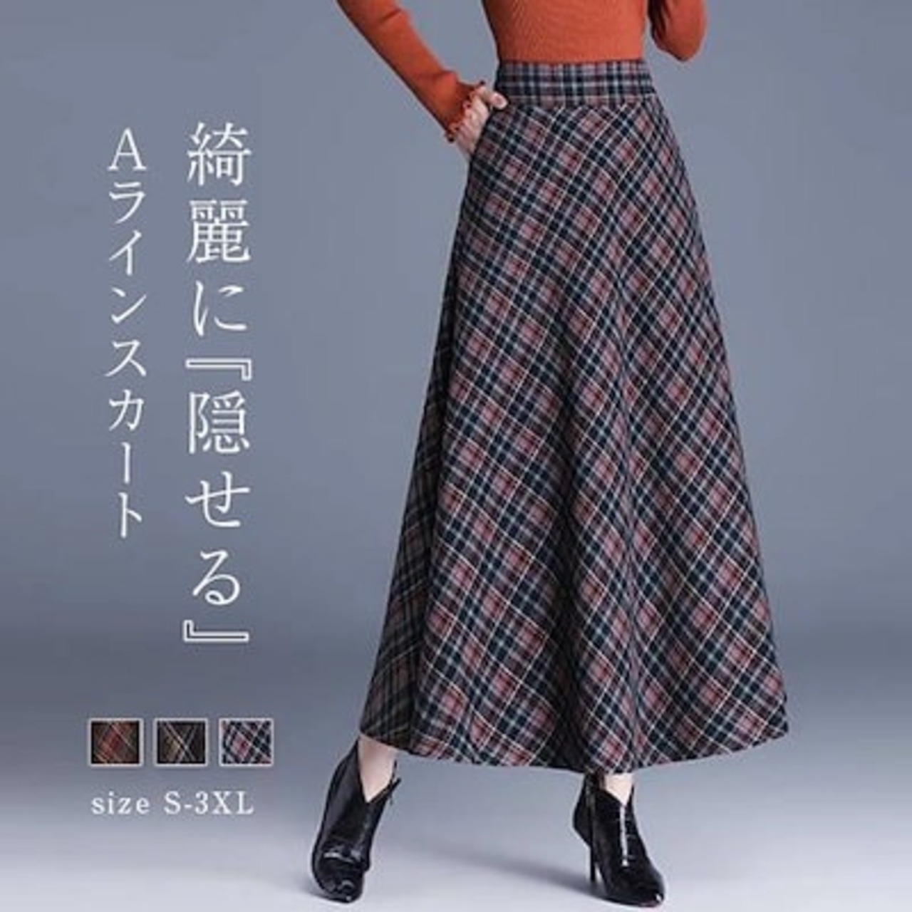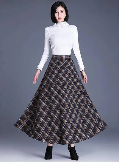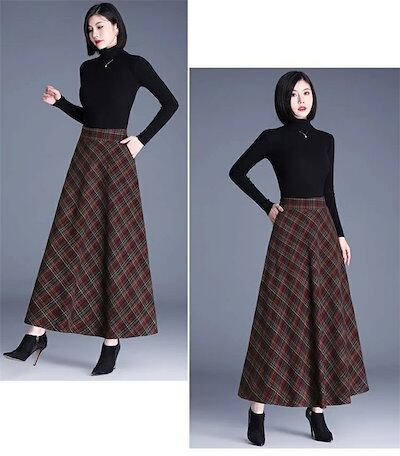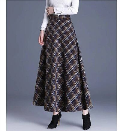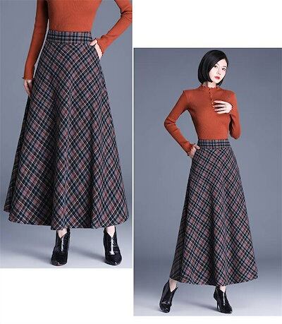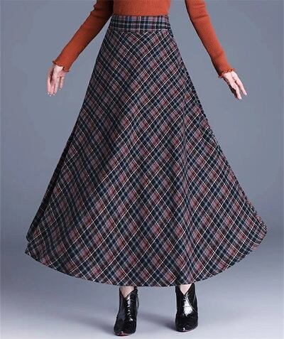 2025秋冬新作スカート レディース ハイウエスト 秋冬 きれいめ チェック柄 ロング Aラインスカート ボトムス ロング丈 Aライン フレア お洒落 着回し 体型カバー 厚手 エレガント 大人 ゆっ | koookooo