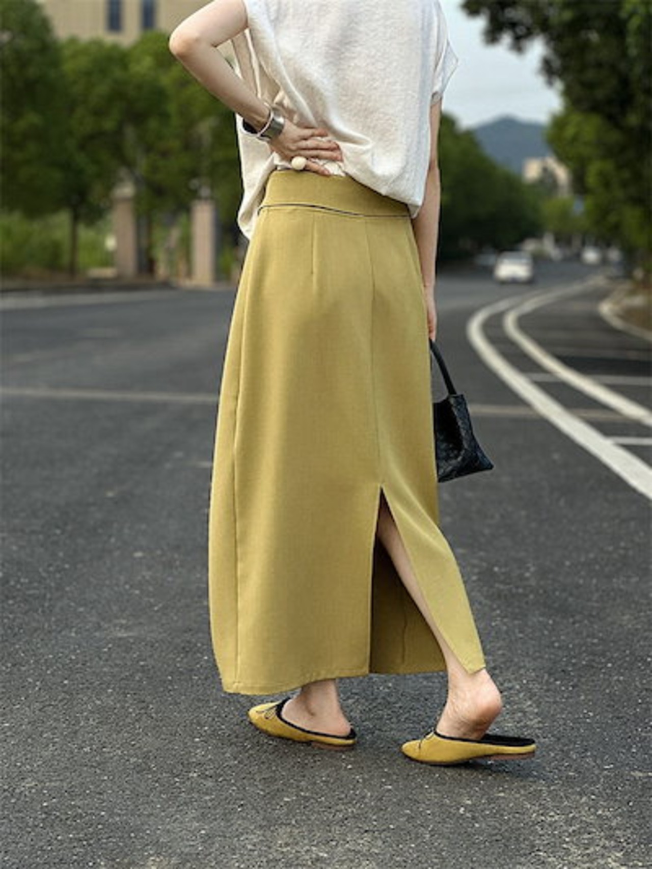 2025秋冬新作スカート ロング レディース 春 秋 ロングスカート スリット入り Iライン ハイウエスト 高見え 上品 きれいめ 抜け感 シンプル 美ライン ストレスフリー 楽ちん ストレッチ お洒 | koookooo