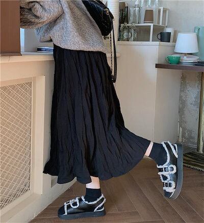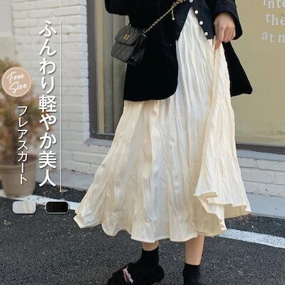 2025秋冬新作スカート レディース ロングスカート ワッシャースカート ロング丈 春 夏 秋 フレアスカート ウエストゴム ふんわり シワ加工 Aライン オシャレ カジュアル シンプル ゆったり モ | koookooo