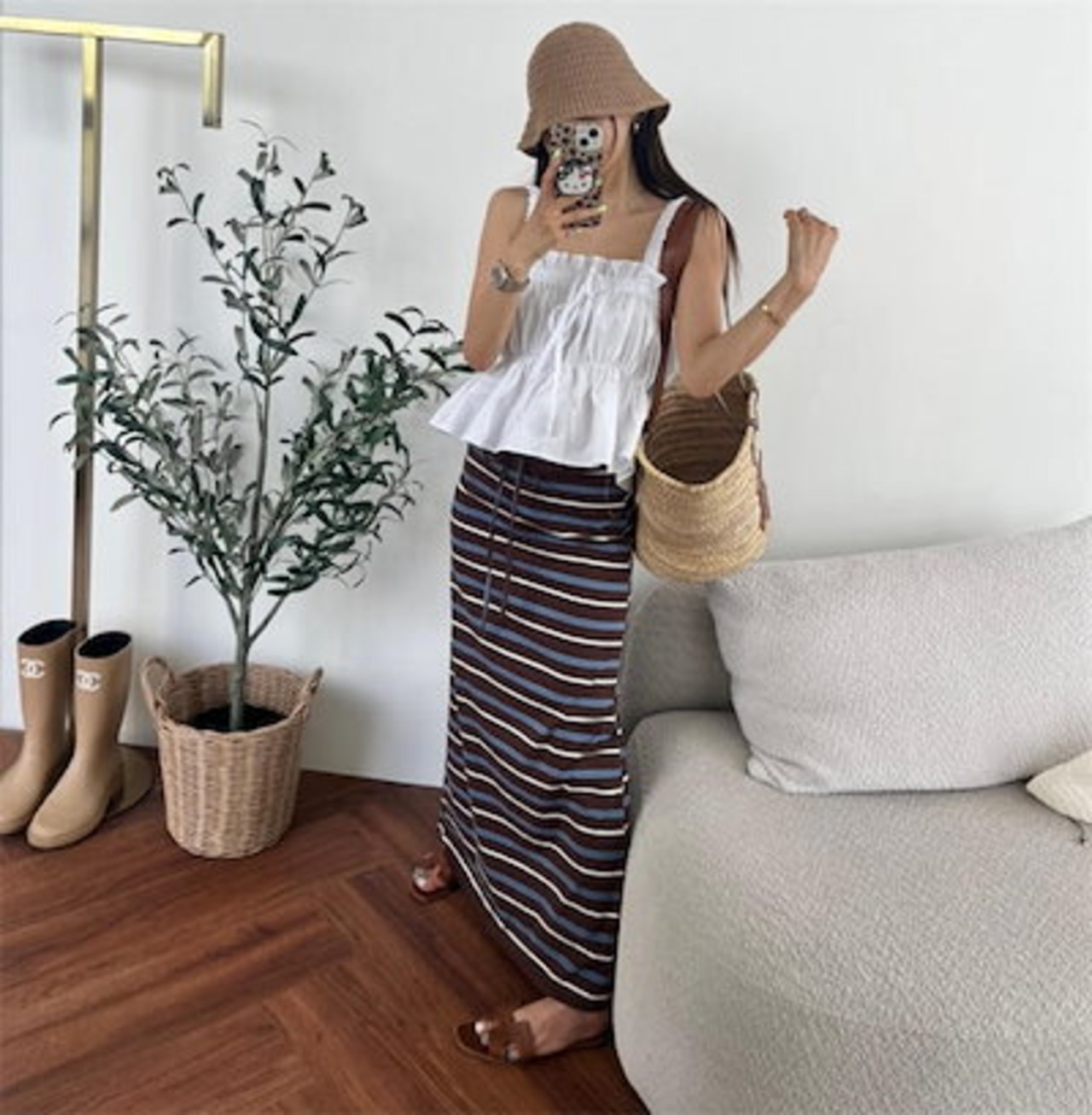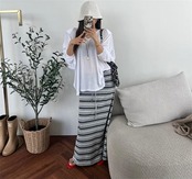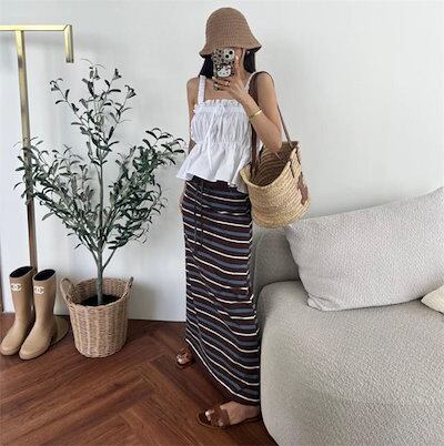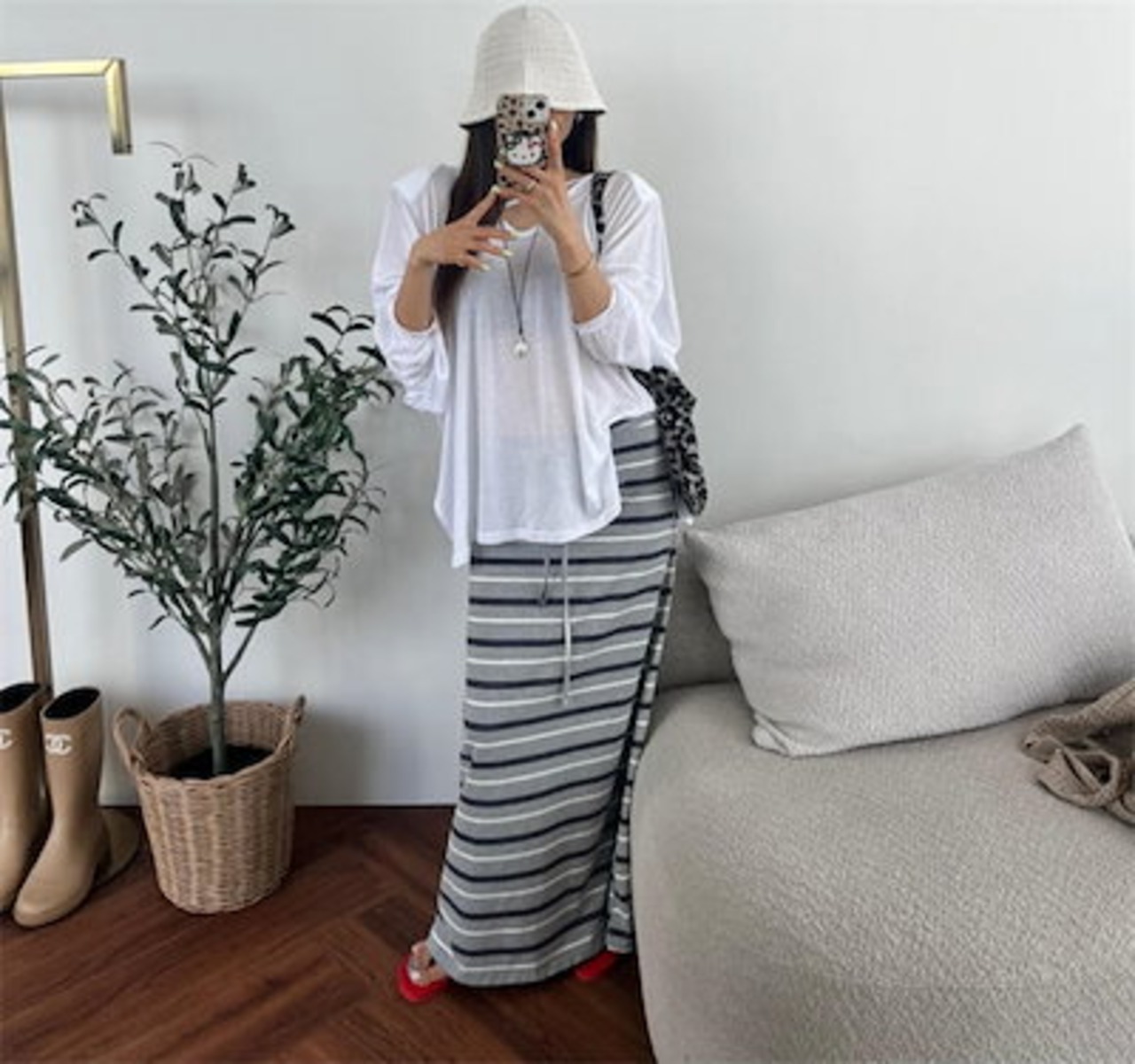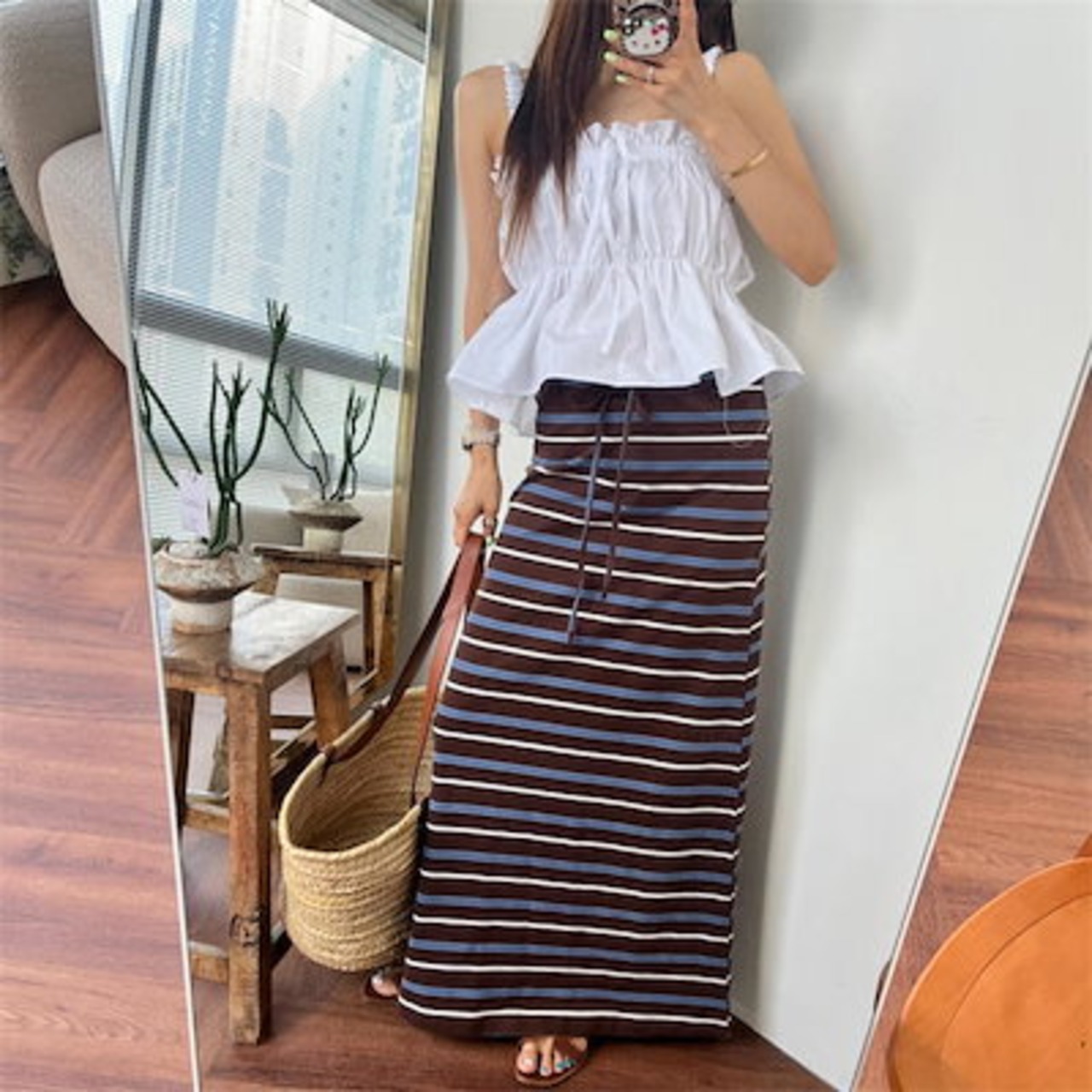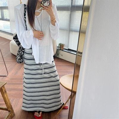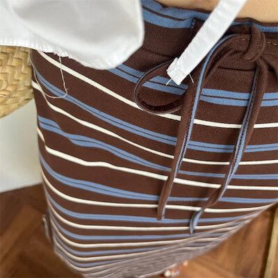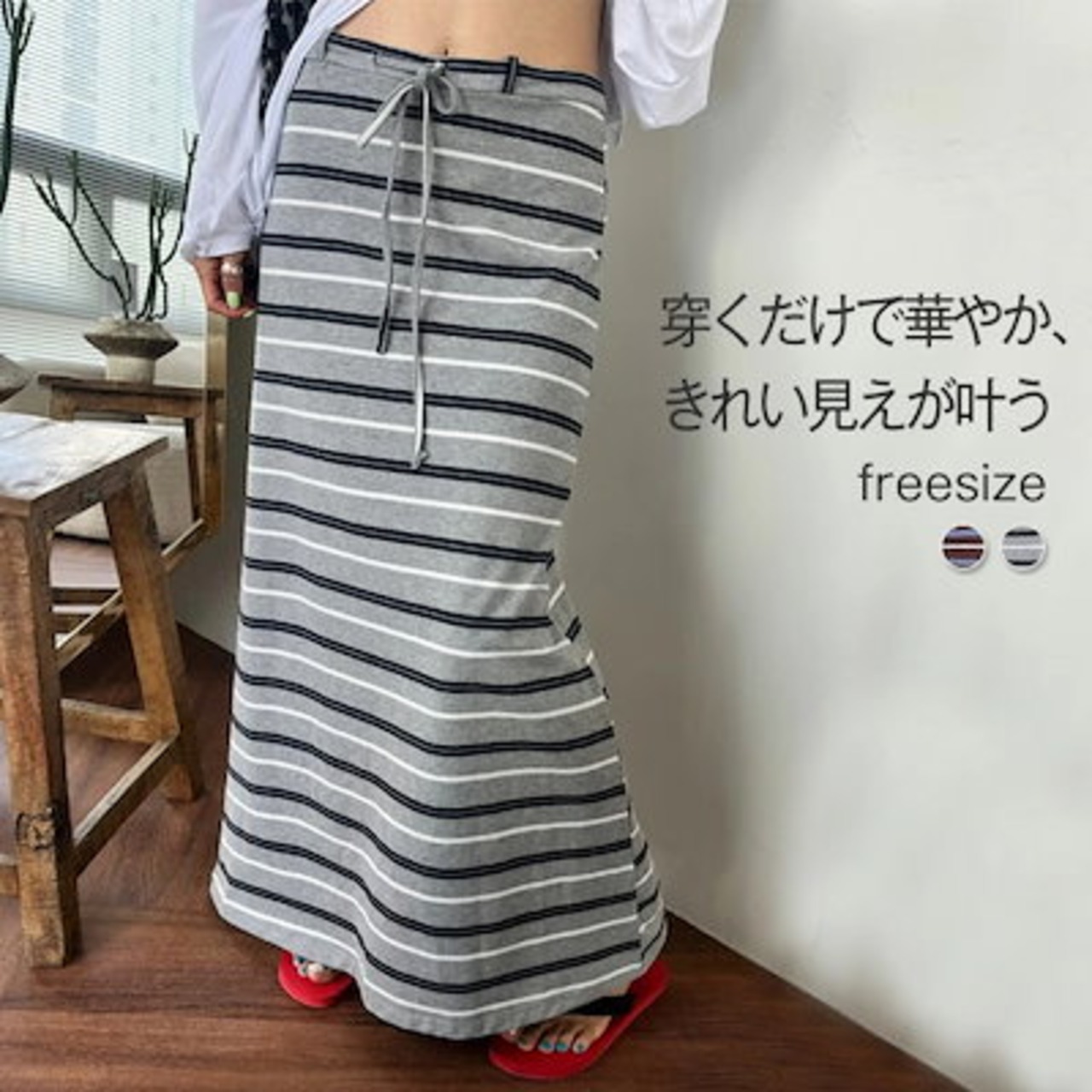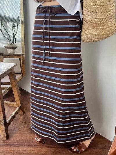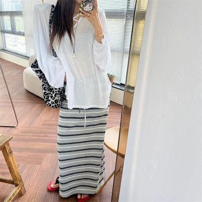 2025秋冬新作ニットスカート スカート レディース ボトムス ロング ボーダー ロングスカート 配色 ゆったり きれいめ タイトスカート スリム 上品 Iライン 細見え 着痩せ タイト 美シルエット | koookooo