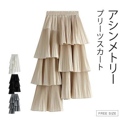 2025秋冬新作スカート プリーツスカート アシンメトリー レディース 無地 春 夏 秋 冬 プリーツ ロングスカート ボトムス ゆったり ロング ボトムス オフィス OL エレガント 着痩せ 通勤 | koookooo