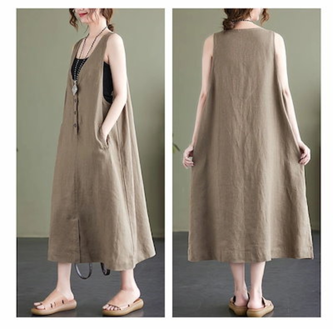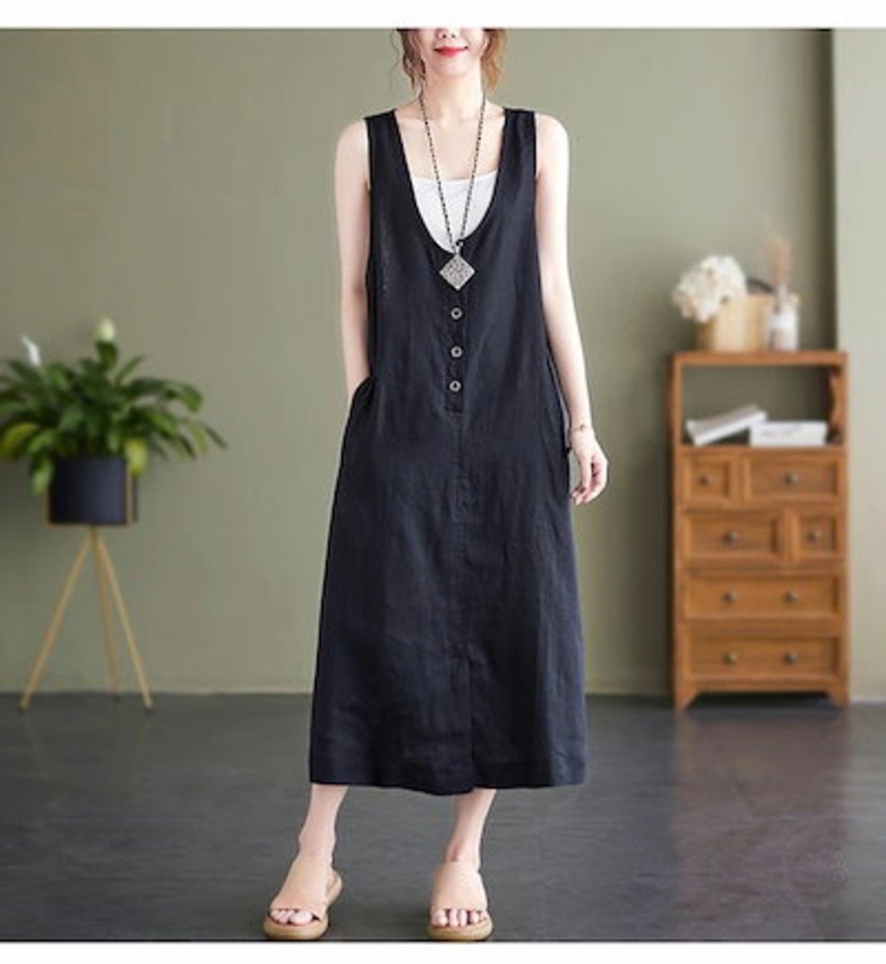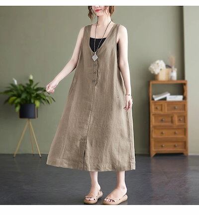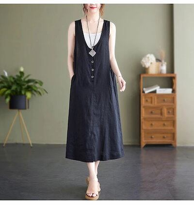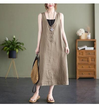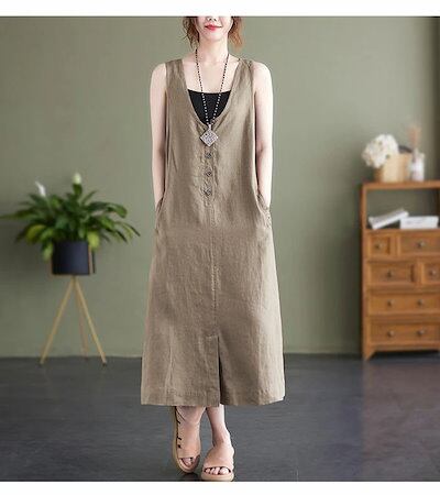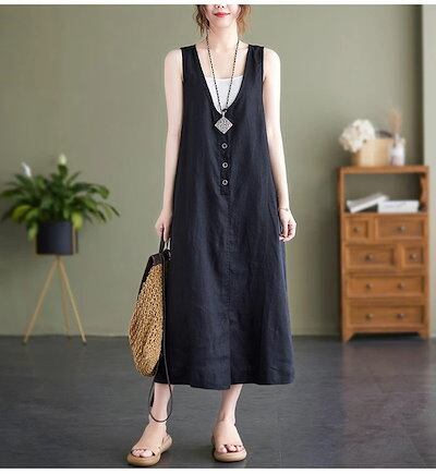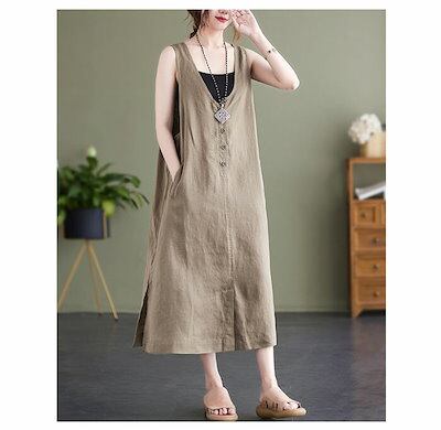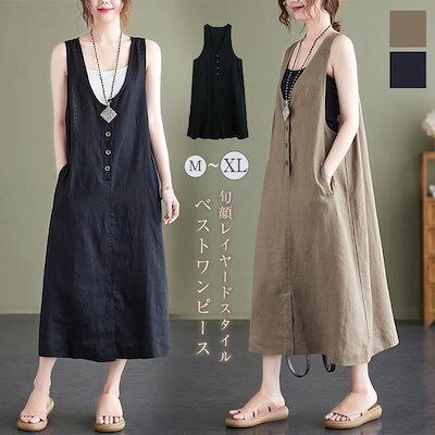 ベストワンピース ワンピース ノースリーブ ベスト レディース ロングワンピース 無地 サマー タンクワンピース レイヤード 重ね着 ロング丈 ワンピ 前ボタン ゆったり エレガント おしゃれ カジュ | koookooo