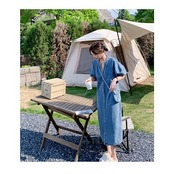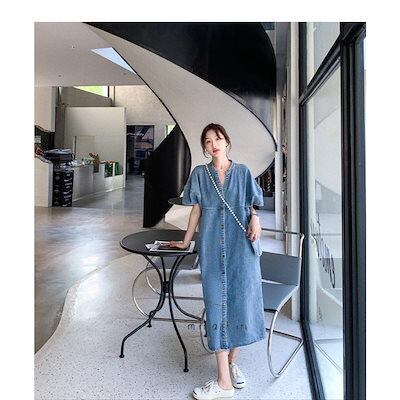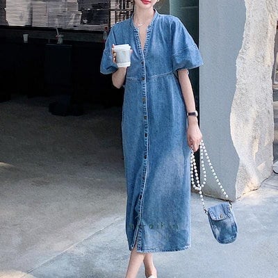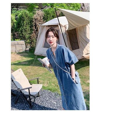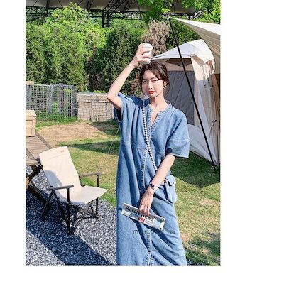 アジアン 40代 I型 夏デニム ポケット付き ドルマンスリーブ Vネック ボタン 羽織り デニムワンピース 夏 ロングワンピース 半袖 ロング レディース 】ワンピース 【新作セール】【即納 | koookooo