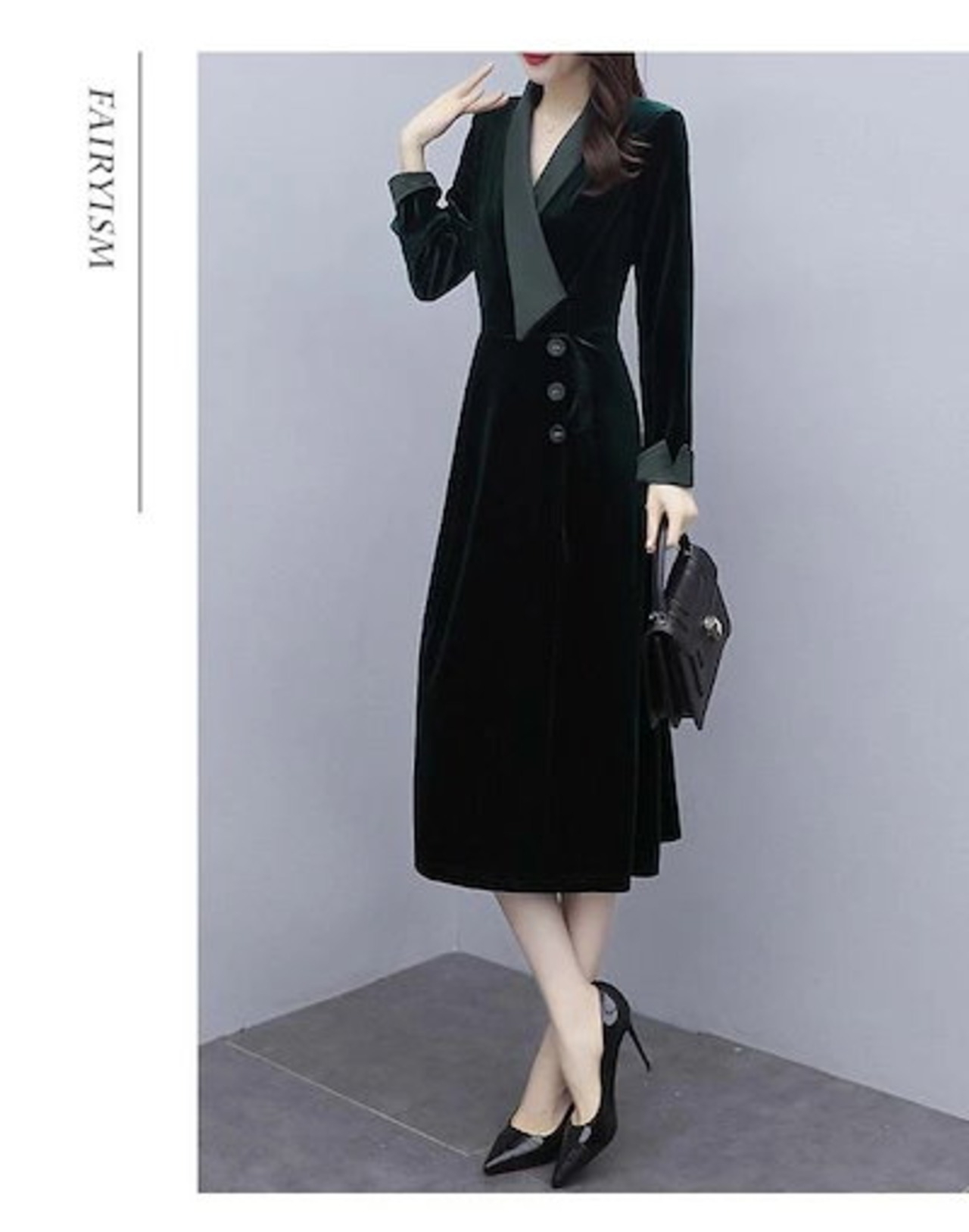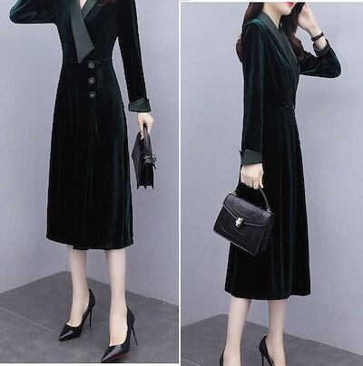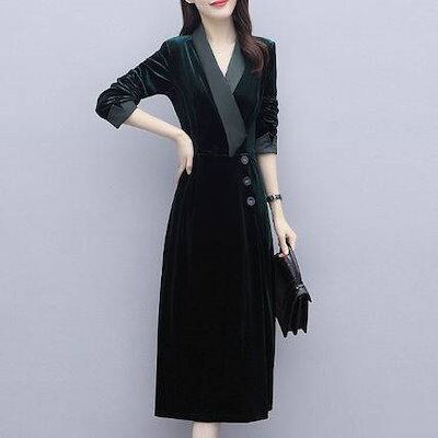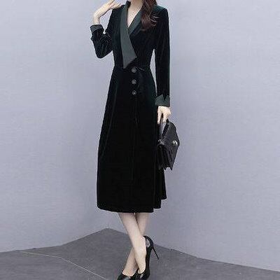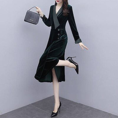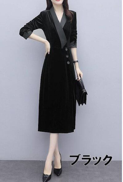 人気 シャツ ワンピース レディース 2色 カシュクール Vネック アシンメトリー カシュクール ジャケット風 レトロ ヴィンテージ シングルボタン ミディアム丈 春 秋 冬 普段使い デイリー ジャ | koookooo