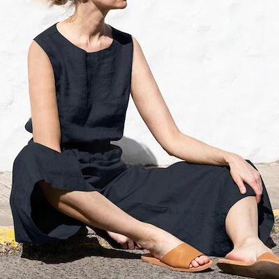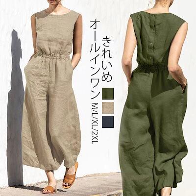 人気新作 オールインワン レディース サロペット パンツ オールインワン レディース バックボタン ラウンドネック サイドポケット 体型カバー キレイめ 上品 春 夏 秋 無地 大きいサイズ ゆったり | koookooo