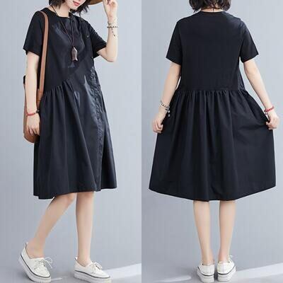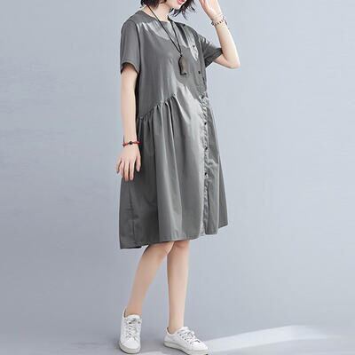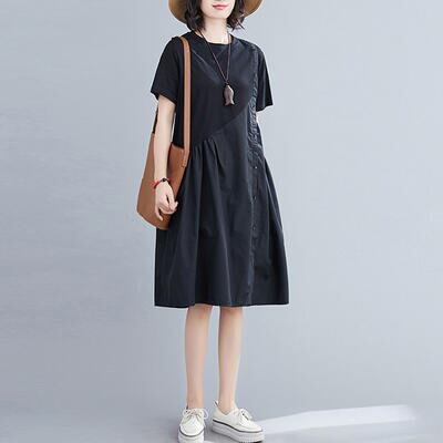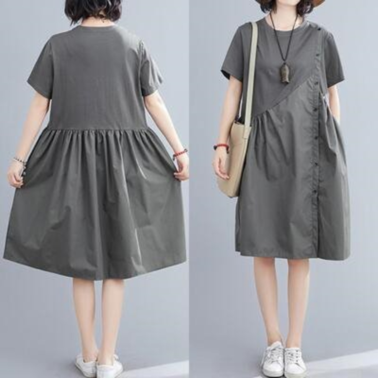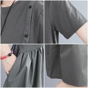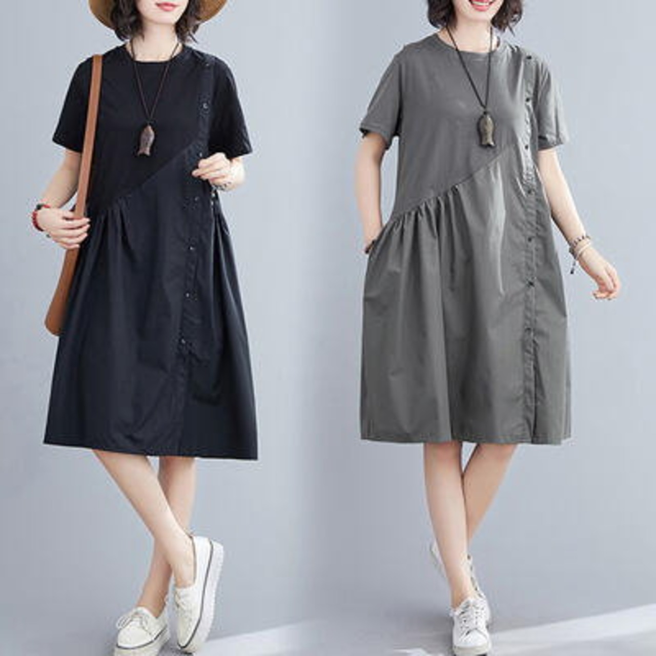 ワンピース ひざ丈 カジュアル おしゃれ 半袖 レディース きれいめ ワンピ ドレス ボタン 涼しいピ ゆったり 体型カバー 可愛い 春 夏 秋 大きいサイズ ブラック 黒 グレー 20代 30代 4 | koookooo