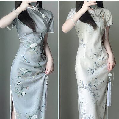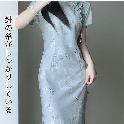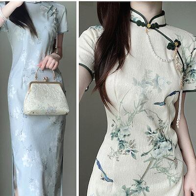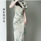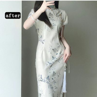 ワンピース レディース 中国風 ロング 夏ワンピ チャイナワンピース 涼しい リネン コットン 着痩せ フェミニン チャイナボタン 半袖ワンピース エスニック エレガント おしゃれ 薄手 上質 ドレス | koookooo