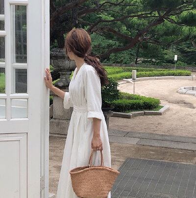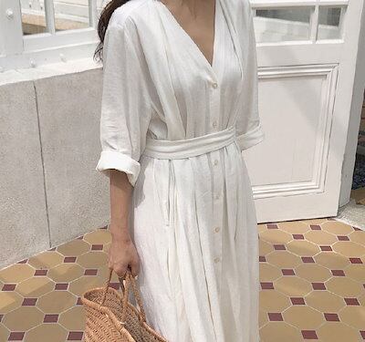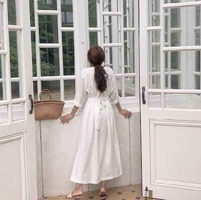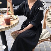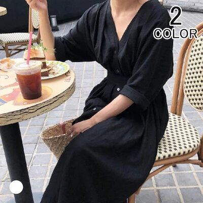レディース ワンピース きれいめ ロング丈ワンピース Vネック 前開き ボタン ワンピ シャツワンピ シンプル 授乳ワンピース ロングワンピ 無地 Aラインワンピース フォマール カジュアル 通勤 結 | koookooo