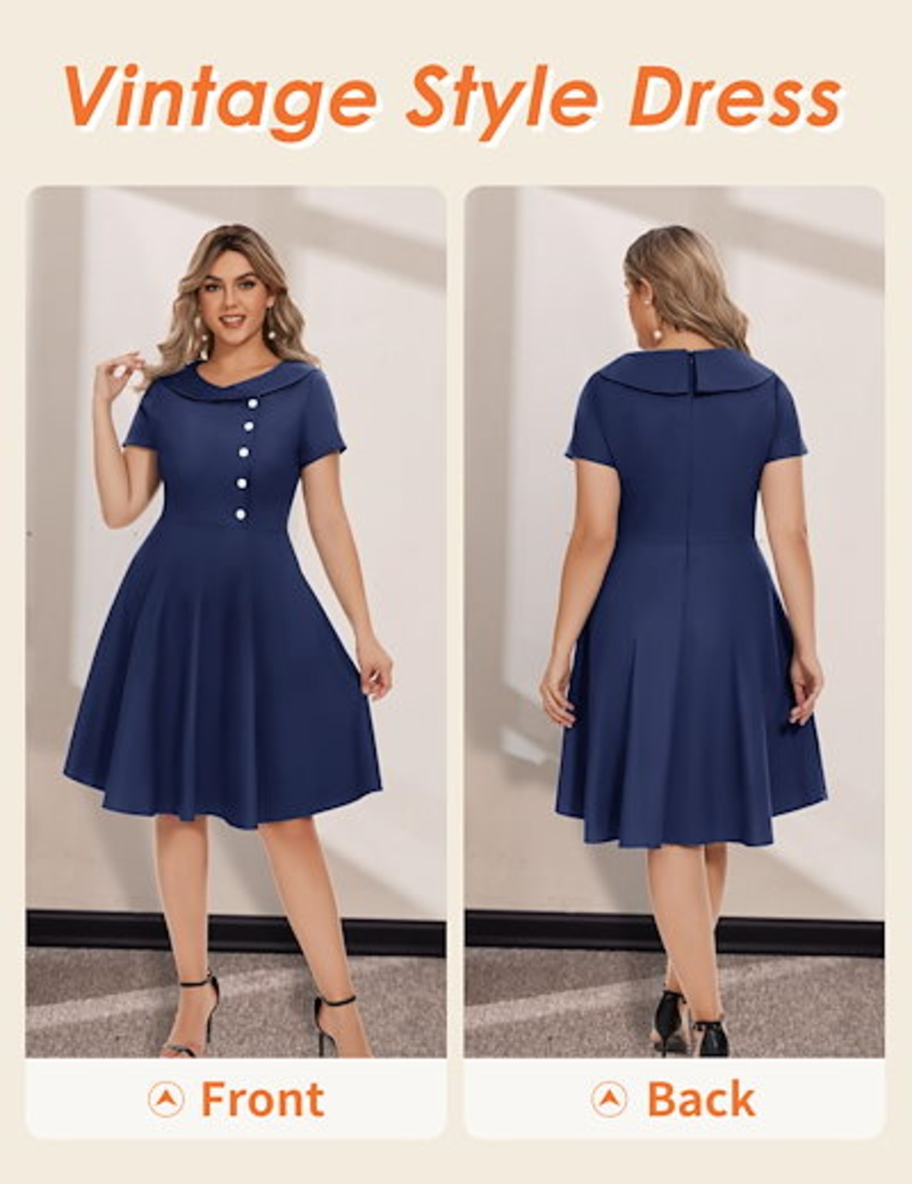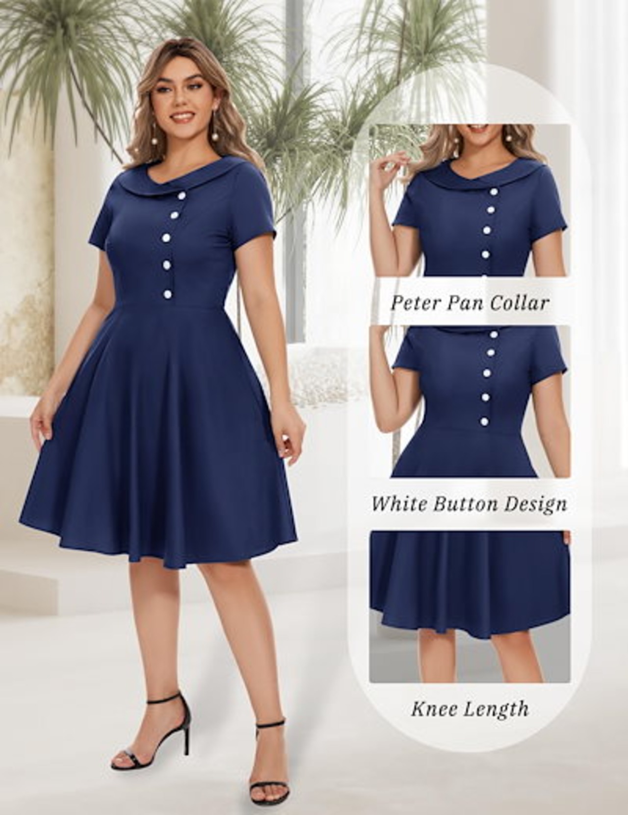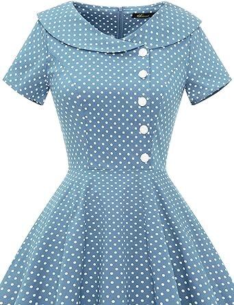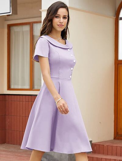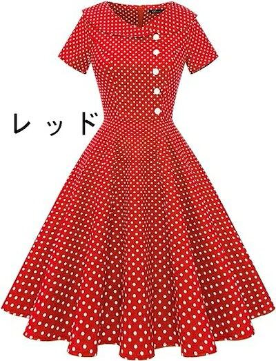 ワンピース レディース レトロワンピース 春夏 Aライン 膝丈 半袖 襟付き 着痩せ 大きなバスト ハイウエストボタン 50年代 ロカビリー 結婚式 披露宴 可愛い 日常 通勤 通学 デート ハロウイ | koookooo