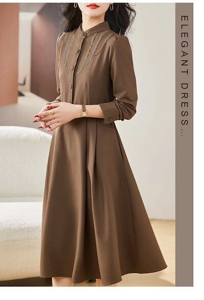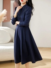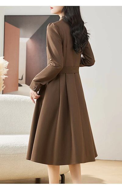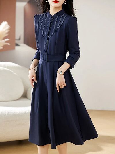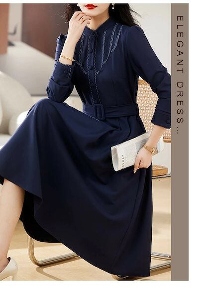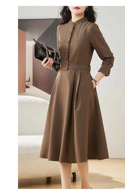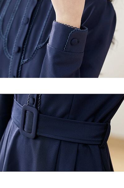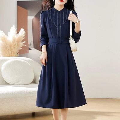 入園式 ワンピース レディース 膝丈 春 長袖着?せ Aライン ボタン付き ポケット付き ベルト付 大きいサイズ 無地 大人 上品 OL きれいめ 結婚式 入学式 卒業式 20代 30代 40代 50 | koookooo