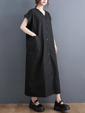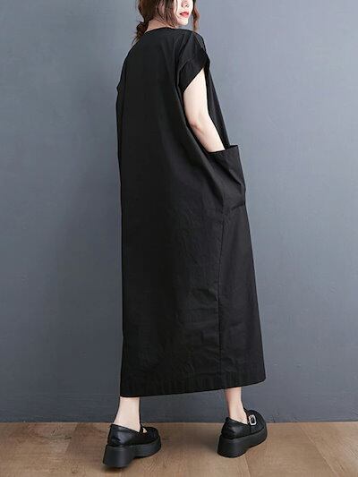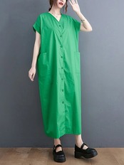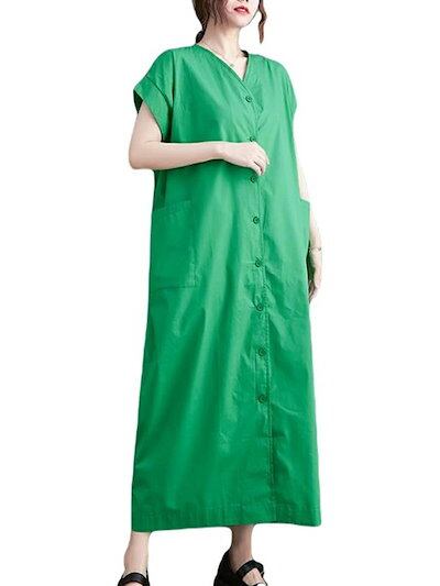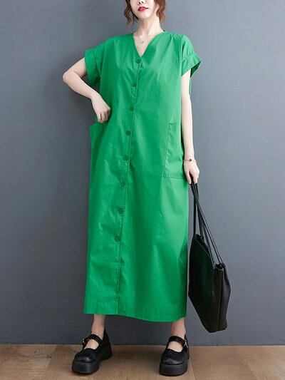 シャツワンピース 半袖 レディース ロングワンピース 綿麻 無地 Vネック ロング シャツ ボタン 羽織 前開 体型カバー 無地 ゆったり シンプル 着痩せ カーディガン ライトアウター ワンピ 20 | koookooo