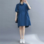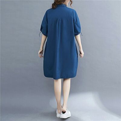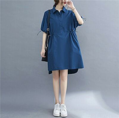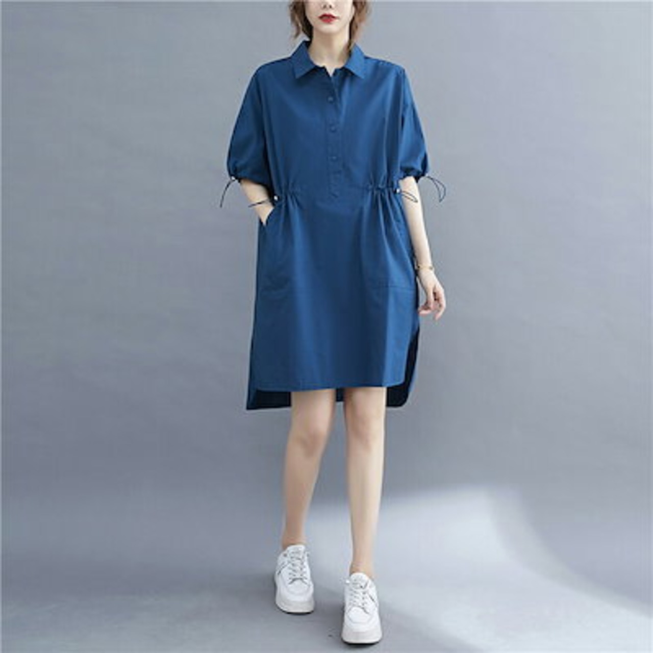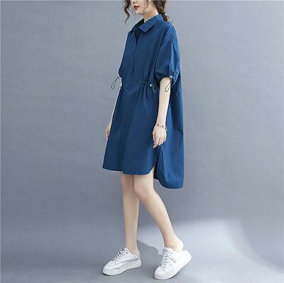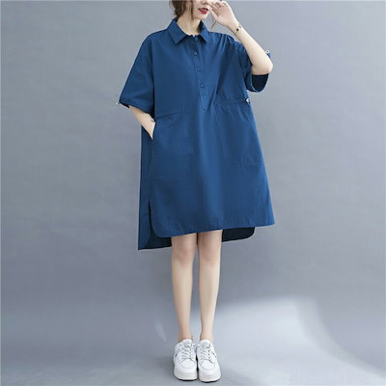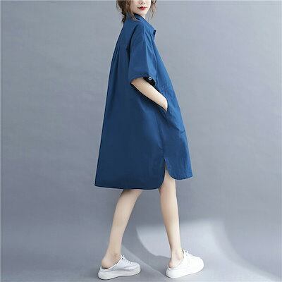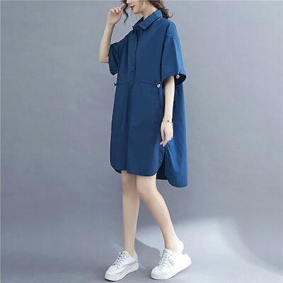 シャツ トップス ブラウス レディース チュニック 半袖 ロングシャツ シャツワンピ 夏 無地 ボタン止め フレアシルエット ギャザー入り ゆったり 着まわし 春 薄手 夏 シンプル カジュアル 体型 | koookooo