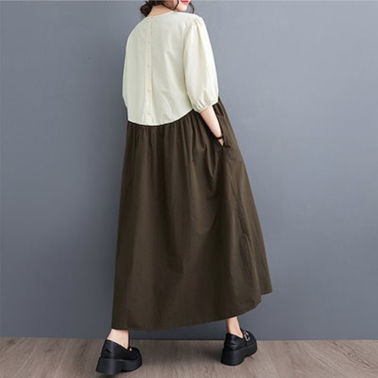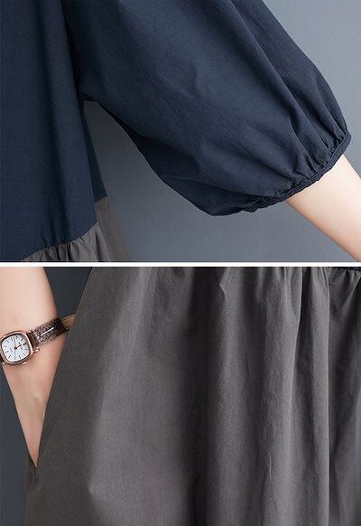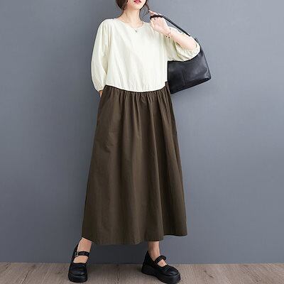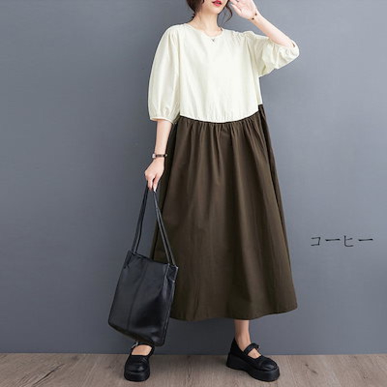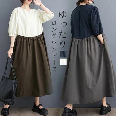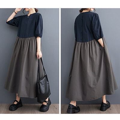 半袖ワンピース レディース ドッキングワンピース 半袖 夏 ロングワンピース レディース ドッキング ワンピース ロング 切替え フレアワンピース ロング丈 マキシ丈 ウエストギャザー バックボタン | koookooo