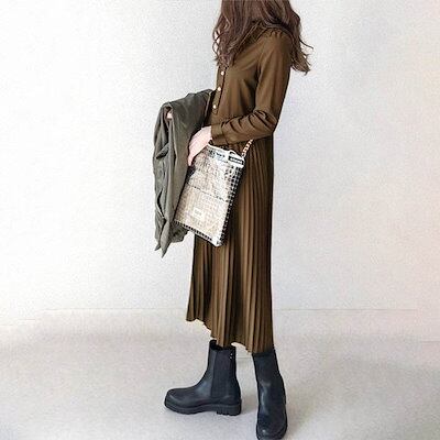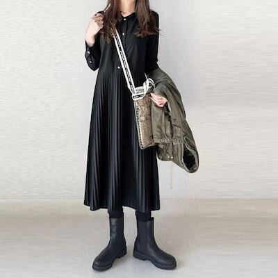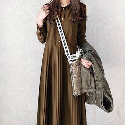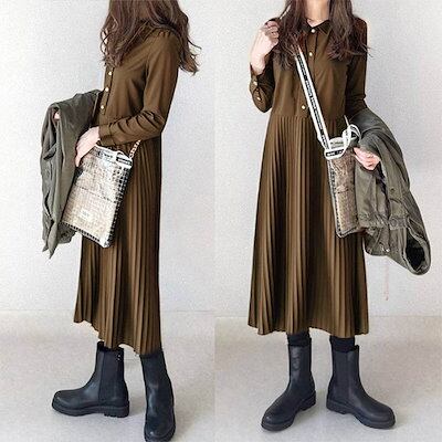 ワンピース 長袖 春 秋 レディース プリーツ ワンピース ロング シャツワンピース 切り替えワンピース Aライン ボタンあり 着痩せ ロング丈ワンピース きれいめ ゆったり Aライン プリーツワンピ | koookooo