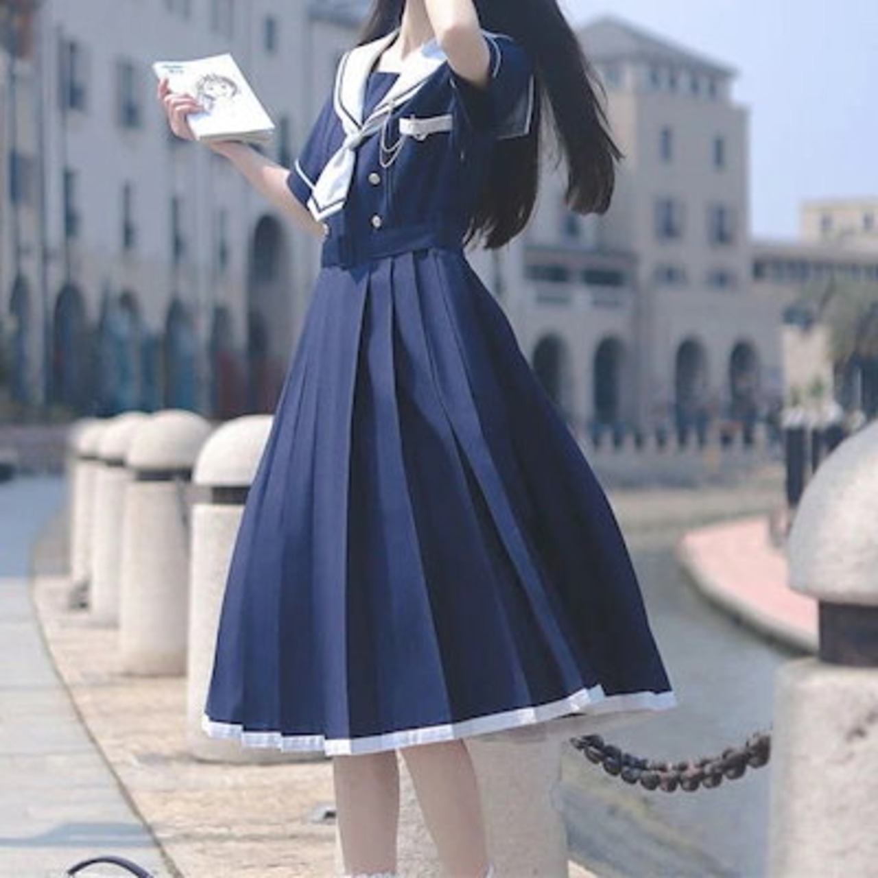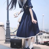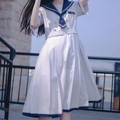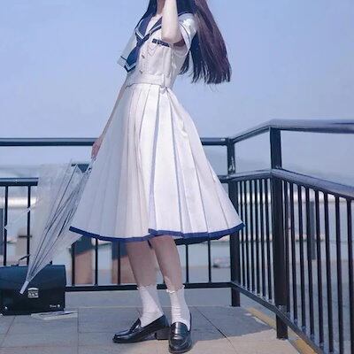 セーラー服コスプレ量産型地雷ハロウィンかわいいリボン白青服レディースセットアップ韓国セーラー襟半袖ひざ丈ミモレ丈可愛いワンピースセーラー服風個性的参戦服ゆめかわいいやみかわいいネクタイプリーツカレ | koookooo