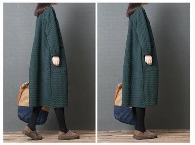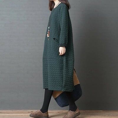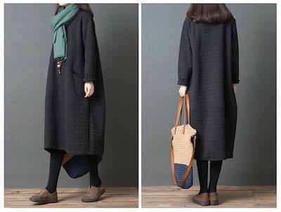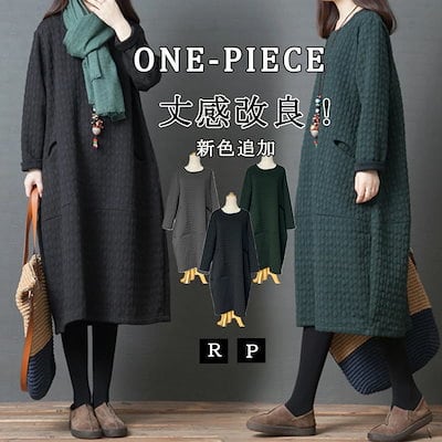 ワンピース チュニック レディース 秋冬 ロングワンピース ロング 無地 防寒 キルティング 長袖 ロングワンピ 体型カバー ゆったり 大きいサイズ 可愛い ひざ丈ワンピース ワンピース 冬 | koookooo