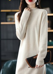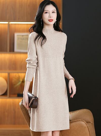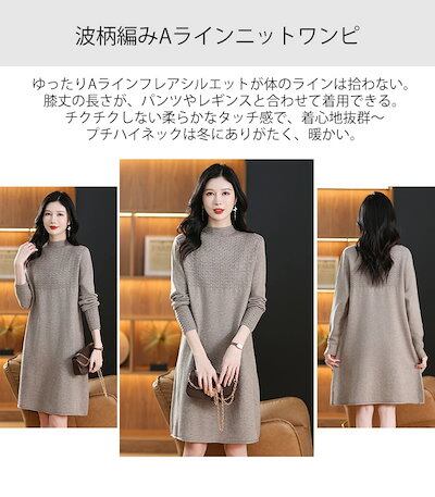 ニットワンピース 秋冬 ワンピース レディース ニットワンピ 長袖 ひざ丈 ミモレ丈 リブニット 大きいサイズ ゆったり 体型カバー カジュアル ニット 秋 無地 オシャレ エレガント きれ シンプル | koookooo