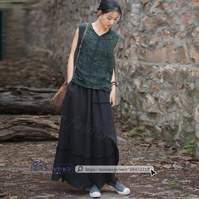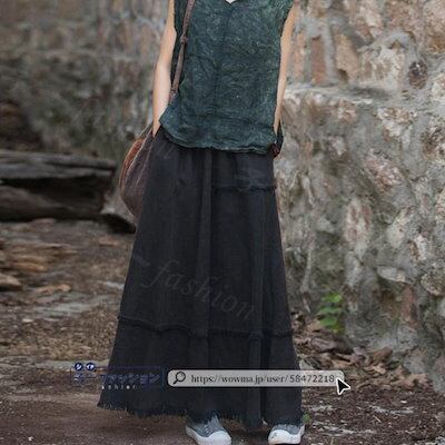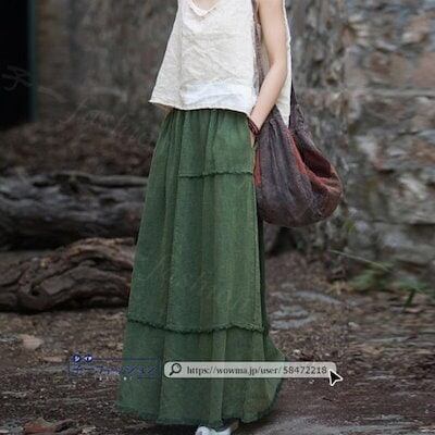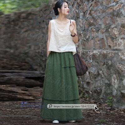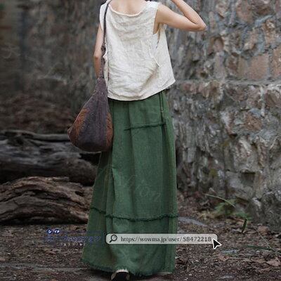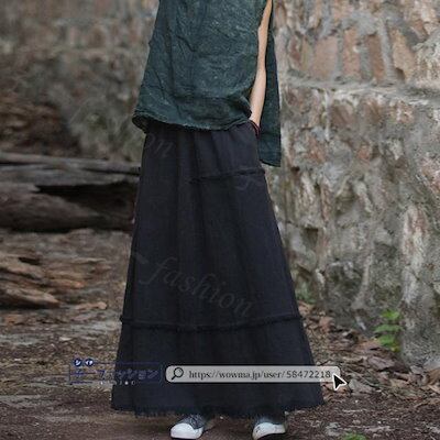 【2点2OO円OFF!】スカート マキシスカート コットンリネン ロング ロングスカート 秋ハイウエスト ウエストゴム 無地 大人 マキシ ひざ下 aライン レディース ロング丈 美ライン 演奏会 | koookooo